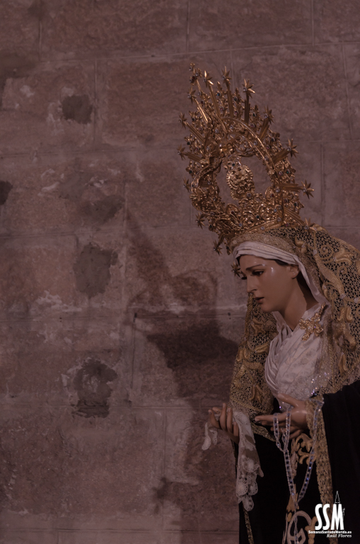De repente se me secó el pincel, necesitaba mojarlo para poder seguir pintando. Busqué por la parroquia y me encontré el reguero de lágrimas de dos costaleros que, ante la Señora, daban gracias porque, al menos, este Jueves Santo estaban ante Ella.