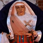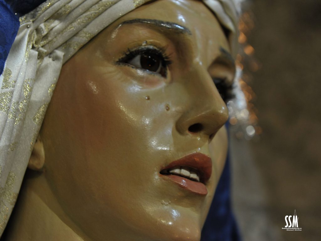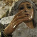 Ciñendo la cintura de María Santísima de Nazaret, encontré una inmensa paleta de colores en su cíngulo hebraico. Mirada serena, dulce rostro de una madre que sabe que, en este Jueves Santo, todo comienza a cobrar sentido. Que en este Jueves Santo no estaría sola ante la Vera Cruz como ocurriera el año pasado.