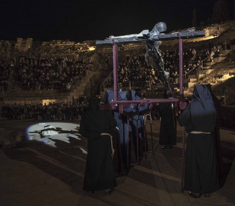 CRÓNICA LUNES SANTO 2019 Fecha:15 de abril de 2019 Redactor:Luis Miguel González Pérez Fotografías: Marco Sánchez NovaManuel MolinaFrancisco Rosco “La procesión está en la calle, y en su deambular por Mérida, el penitente dirige su mirada permanentemente a la azotada espalda de su Cristo de