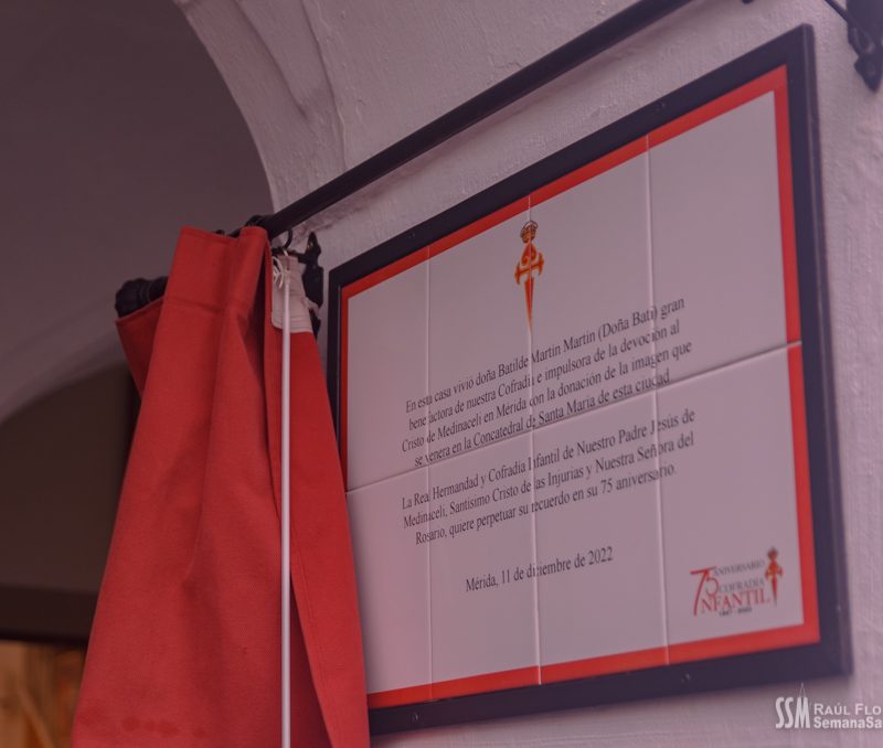 La Cofradía Infantil cierra su 75 aniversario homenajeando a Doña Bati con el descubrimiento de una placa cerámica en la fachada de la Confitería Gutiérrez