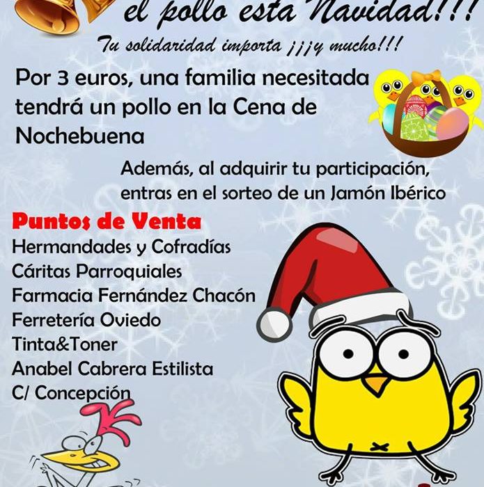 Campaña solidaria de la Junta de Cofradías. Como cada año, la Junta de Cofradías, el Cofrade Solidario, Cáritas Interparroquial y la Cadena Cope se unen para que, en la cena de Nochebuena, las familias necesitadas de Mérida tengan un pollo en