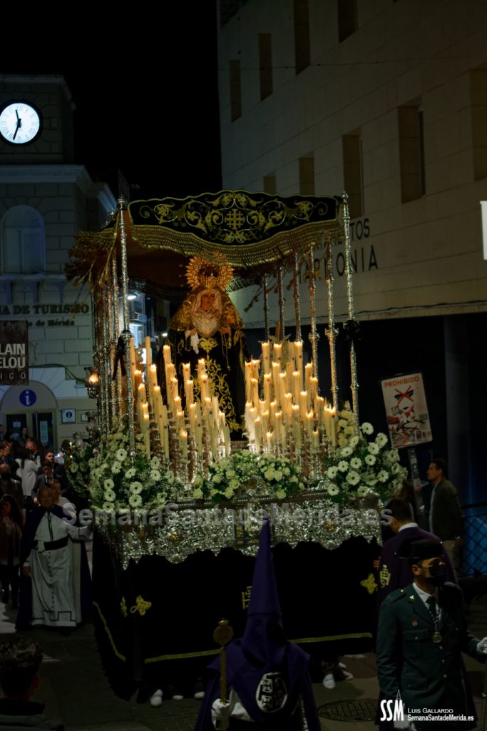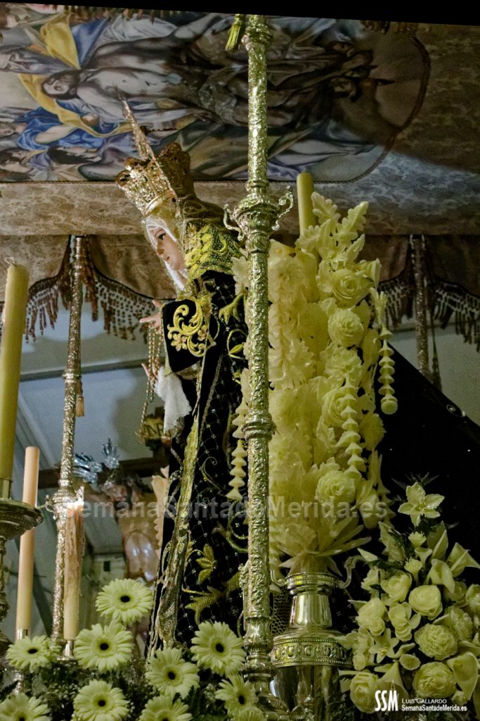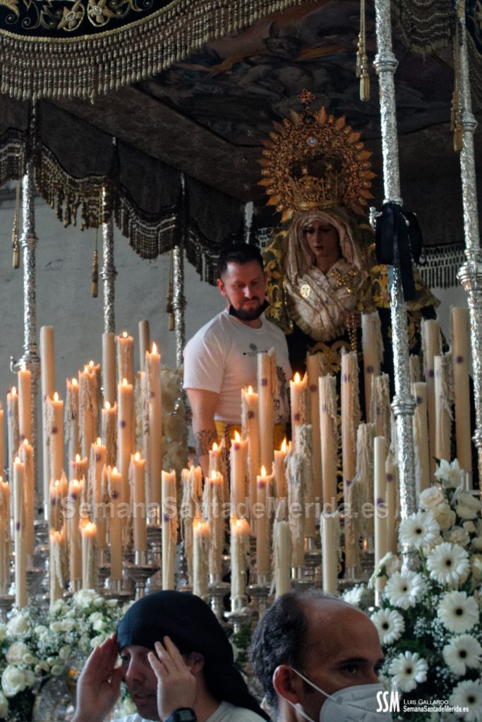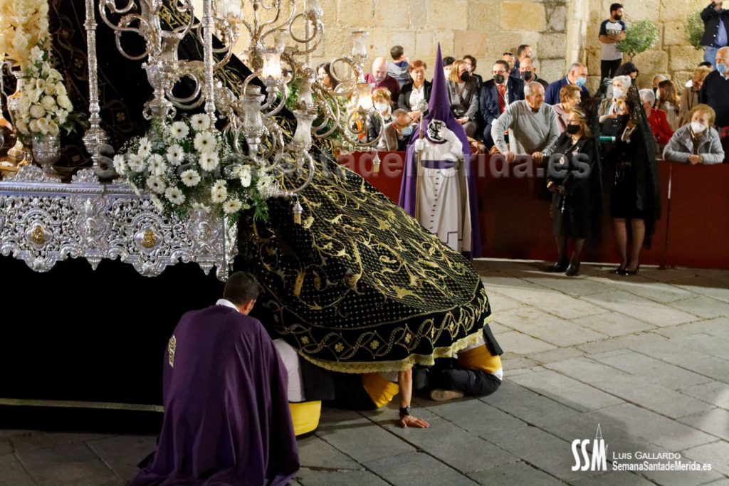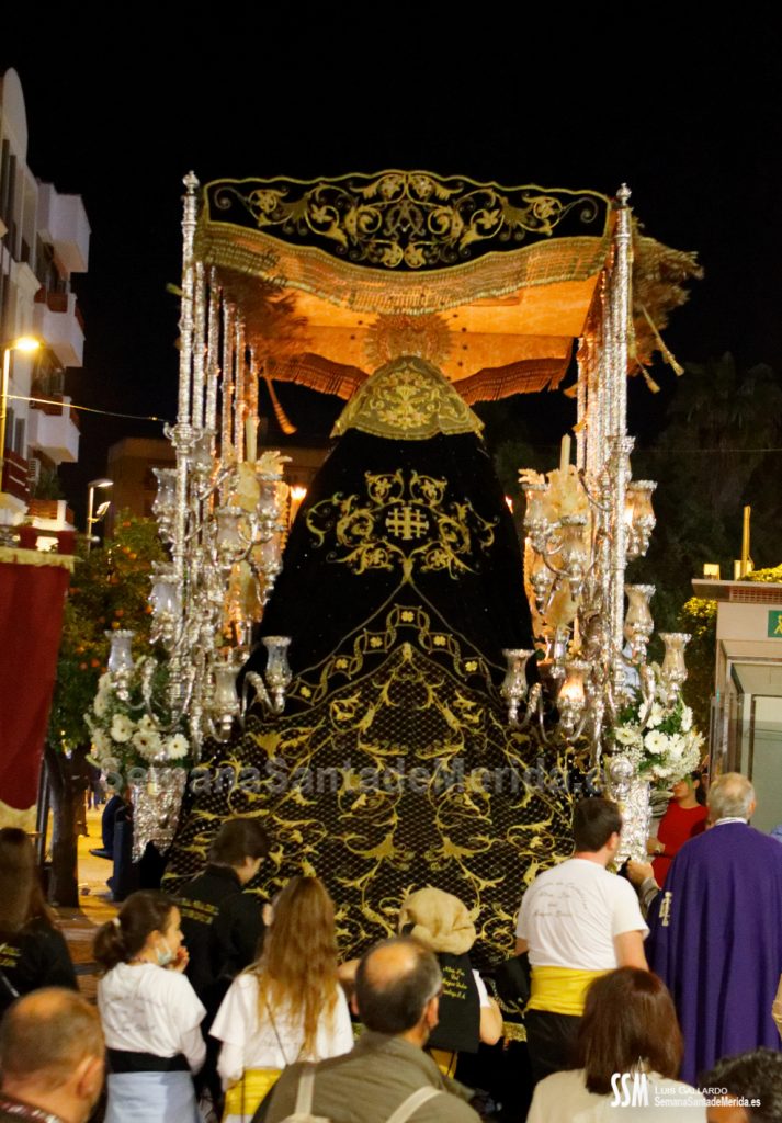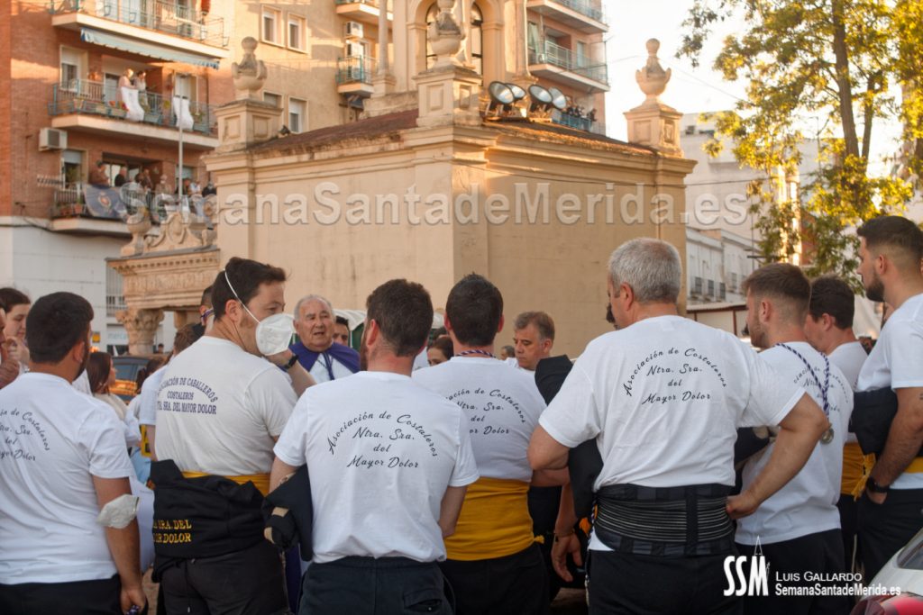 Tras el paso majestuoso un palio que embelesa, que guarda ese sabor y esencia que nunca se debería perder y en el que sobresale el esfuerzo de su cuadrilla de costaleros que, tras un palizón inmerecido la noche anterior, supieron pasear con elegancia a la Virgen del Mayor Dolor.