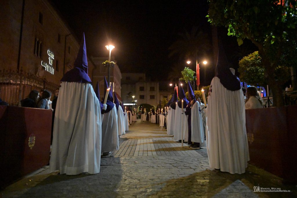 Muchos de los que vamos debajo de una túnica, debajo del paso, o quizá todos, reconocemos el ambiente festivo que se respira en las calles del centro y que henos vivido y disfrutado en primera persona, pero hoy no hemos elegido ese ambiente, hoy hemos elegido mantenernos en silencio en medio del ruido, intentar mantenernos en la presencia del Señor durante apenas un par de horas con nuestros problemas y nuestras penas, nuestras debilidades y miserias, también con nuestros proyectos, nuestras ilusiones y esperanzas. En nuestras mente aquéllos que se fueron, pero también aquéllos que siguen a nuestro lado y a los que queremos.
