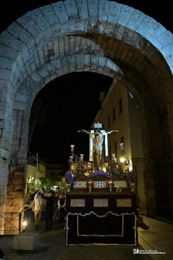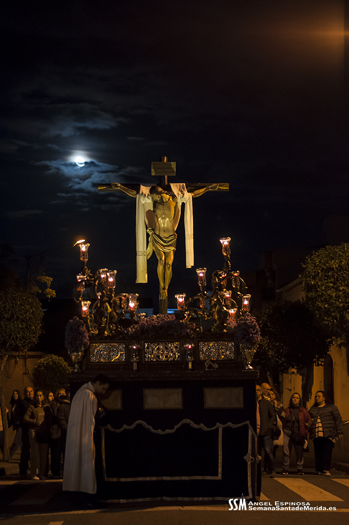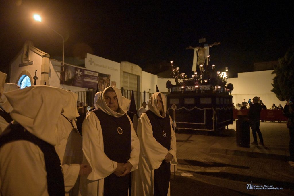 A la una de la madrugada, puntual siempre que el tiempo lo permite, suena la campana de la Ermita, se abre la gran puerta y el sacerdote comienza la oración que culmina con el Voto de Silencio, a partir de aquí, el paso se levanta abandona el interior de la Ermita y comienza su discurrir por las calles de “El Barrio” camino a su Parroquia, con el acompañamiento del sonido de la campana que marca a todos el ritmo de la procesión, desde la Cruz de guía hasta las decenas de personas que tras el paso del Cristo, realizan el recorrido junto a Él.