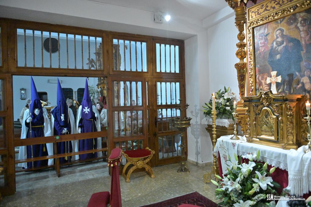 Una vez llega el Stmo. Cristo del Calvario a su Parroquia, una representación de la Junta de Gobierno de la Hermandad, junto con el sacerdote y la Capilla Gregoriana, entran a orar ante el Santísimo Sacramento y todos aquéllos que lo desean, entran también en el templo para unirse y vivir unos instantes de canto, rezo y meditación.
