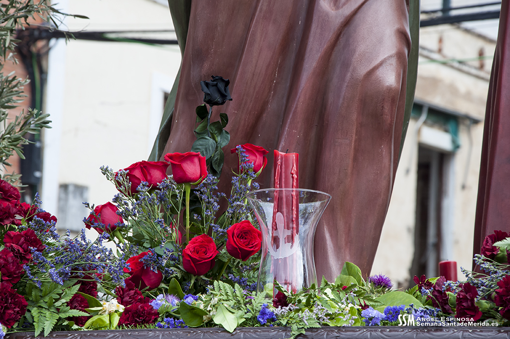 Todo rosal, tiene su rosa podrida. Con esta categórica afirmación, el que fuera capataz del Prendimiento, Manuel Fernández, argumentaba su predilección por llevar un rosa negra en el centro de rosas rojas que cada año embellece este grupo escultórico, el primero genuinamente emeritense.