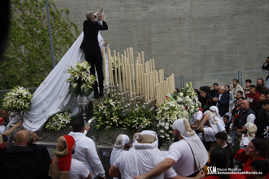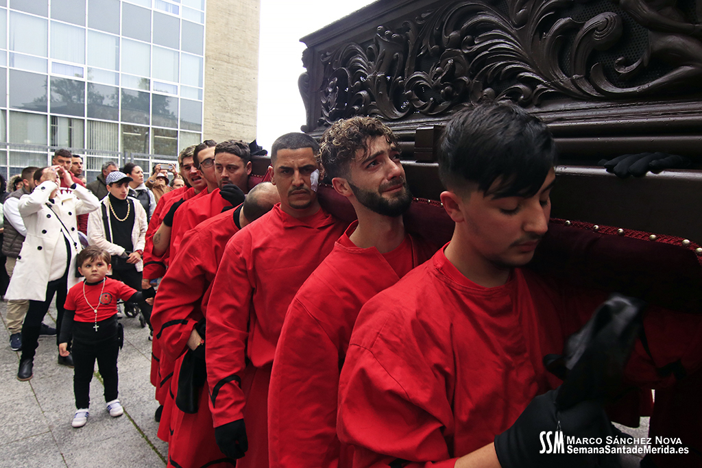 Un emotivo acto, en el interior de San Francisco de Sales, se convirtió en el gran momento de una Cofradía que salió a luchar contra los elementos y que demostró que, en Mérida, sabemos hacer las cosas. Y todo en 60 minutos.