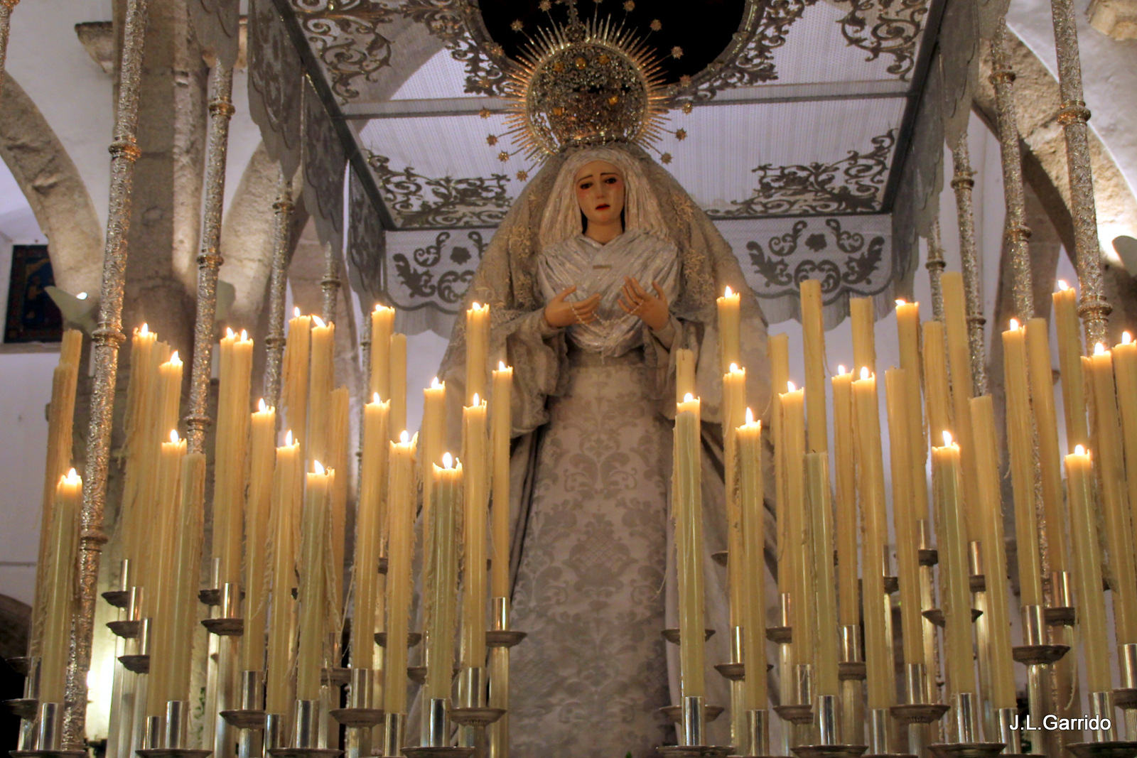Un pacto con el Cielo tenía firmado la cofradía infantil en la noche del Lunes Santo, quitándose así el sabor agridulce que le dejó el domingo de Ramos.   Impecable trabajo del conjunto de la hermandad que en sus plegarias pide que el tiempo respete. Y el tiempo ha respetado, Jesús de Medinaceli, el Santísimo Cristo de las Injurias y Nuestra Señora del Rosario, salen de la Concatedral de Santa María puntutal, con la mirada expectante de cientos de personas.
