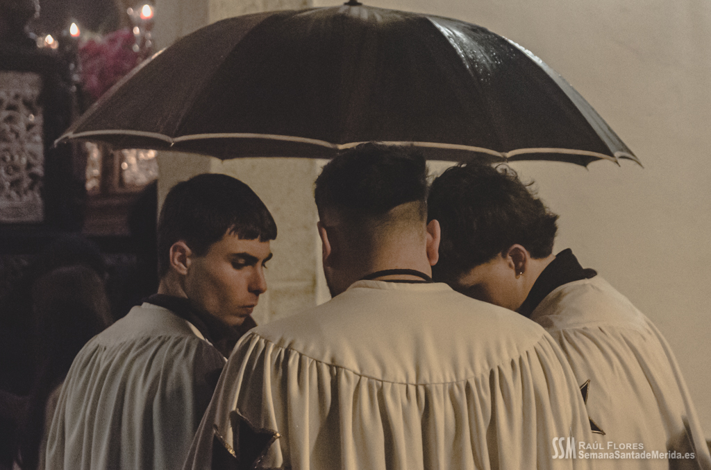 Llegaron las bandas. Se abrieron paraguas. Desconcertados. Finalmente salió su Junta de Gobierno, que tuvo que tomar una decisión amarga y dura en esta noche de Martes Santo, para anunciar que “por responsabilidad” con las personas que forman parte de la estación de penitencia y el patrimonio material incalculable, decidían quedarse en su casa. Melancolía otra vez.