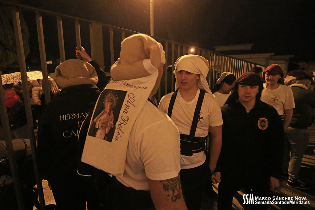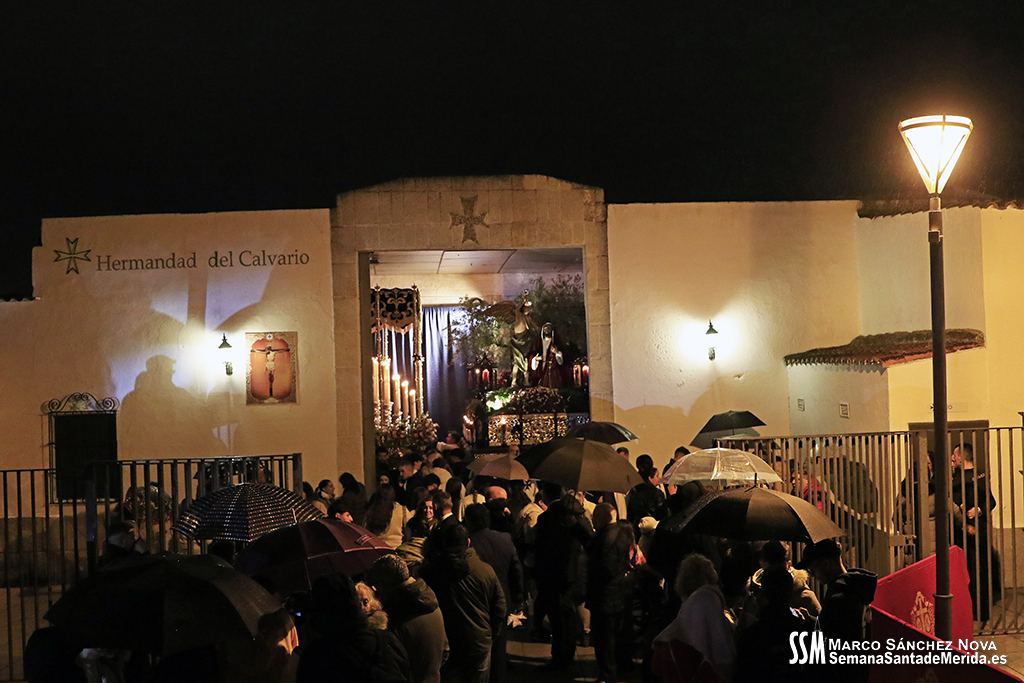 Un Martes Santo desapacible. La meteorología hizo de la noche del Martes una auténtica ratonera. No llovía con contundencia, pero sí lloviznaba de forma intermitente. En la Ermita del Calvario había fervor, mucho, pero también miedos ante la situación que se planteaba por delante.
