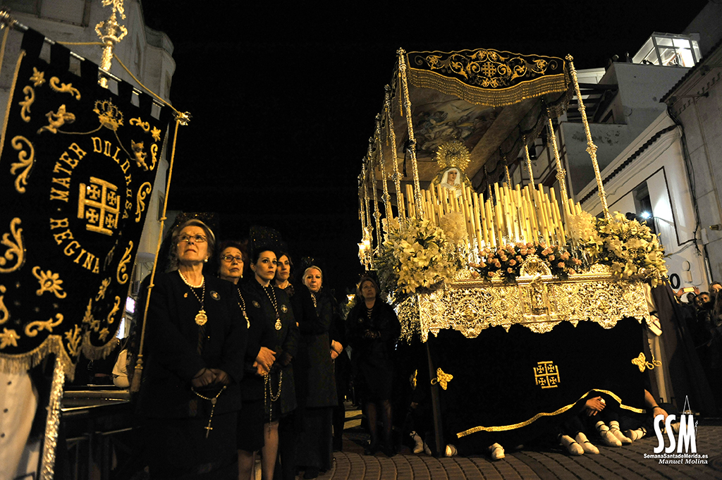 Avanzaba el Nazareno por la Avenida de Extremadura y su madre, la del Mayor Dolor, comenzaba su camino de Amargura hacia la Puerta de la Villa, para encontrarse con Él, con el Hijo del Padre, al que “como cordero lo llevan al matadero”.