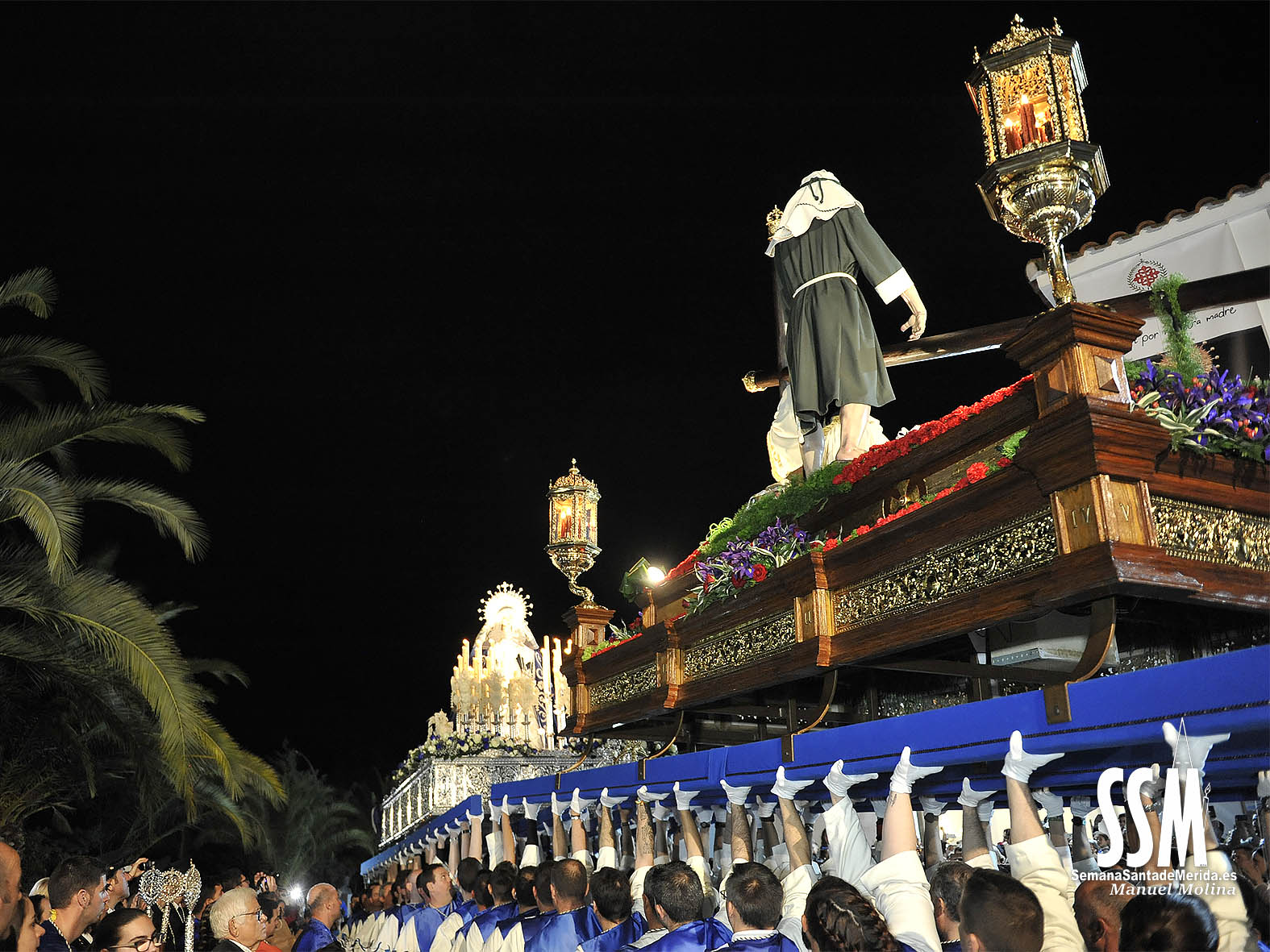 Pese a que el cortejo procesional no pudo cumplir con su penitencia del Miércoles Santo, la Misericordia y las Tres Caídas se encontraron con su barriada, con su gente y se encontraron entre ellos para fundirse en el sentimiento de impotencia pero a la vez de orgullo y de confraternidad. No se ha podido lucir el trabajo bien hecho, no solo el material, también el humano porque esta Hermandad tiene mucho de humano y de ahí el crecimiento constante en los últimos años. Los vecinos se han volcado en arropar a los suyos, entre ellos la familia Báez. Saeta con sabor agridulce y de nuevo se desprenden las lágrimas en los presentes. No puede sonar más bonito, pero también se siente el dolor entre ellos. ¡Va por él, Manolo Báez!