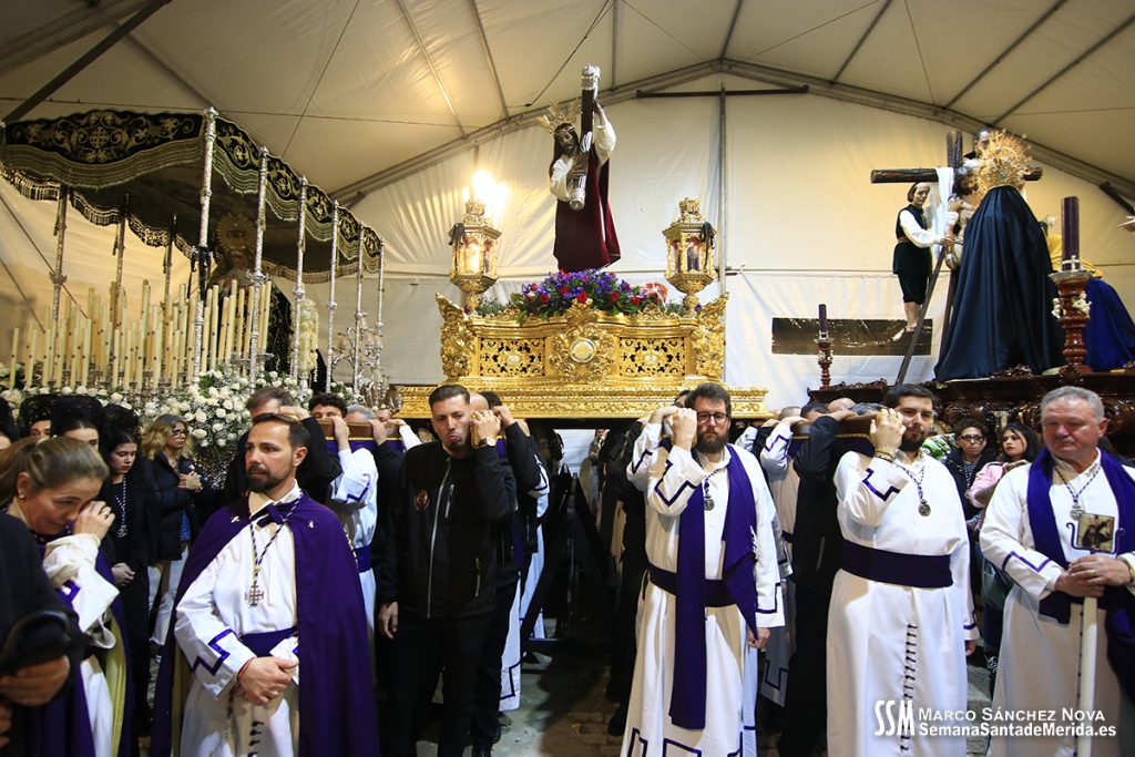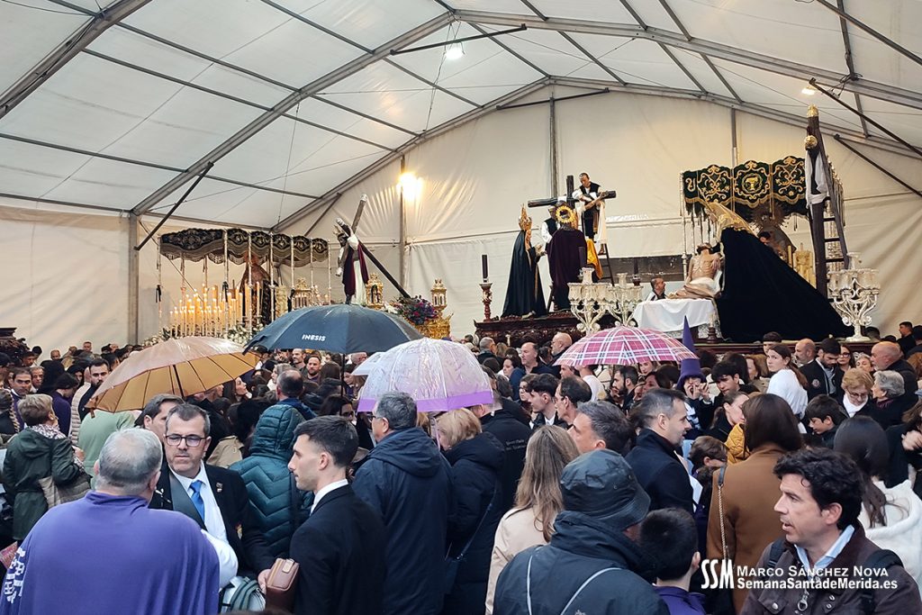 Segundos que parecían minutos, minutos que parecían horas iban pasando en los relojes de quienes esperaban que, al menos, pudieran recorrer alguna de las calles de Mérida cambiando su recorrido. Ni esa oportunidad se nos dió. Este Miércoles Santo no estaba para Él, como tampoco lo estaba, al otro lado del río, para el Cristo de las Tres Caídas.