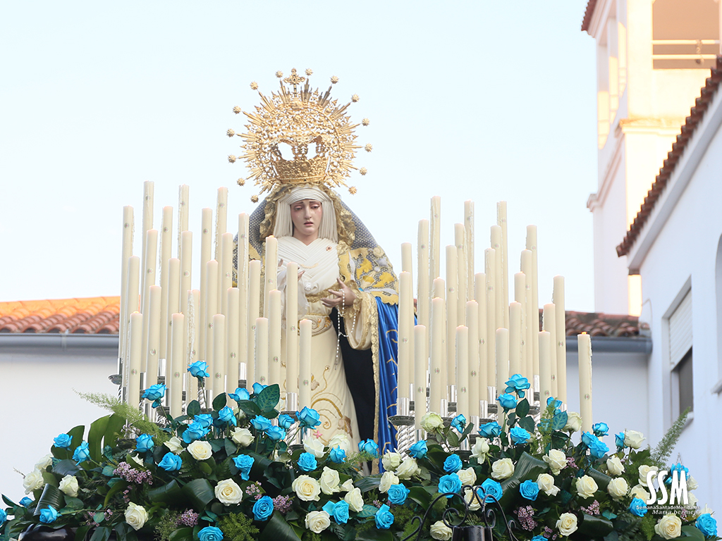 Atronador silencio en Antonio Campos Hoyos. Las puertas laterales de la parroquia de Nuestra Señora de Los Milagros están cerradas a cal y canto. La avenida, en la que todo un barrio se une para vivir ese momento que lleva esperando no uno, sino dos años, se muestra con una soledad infinita.