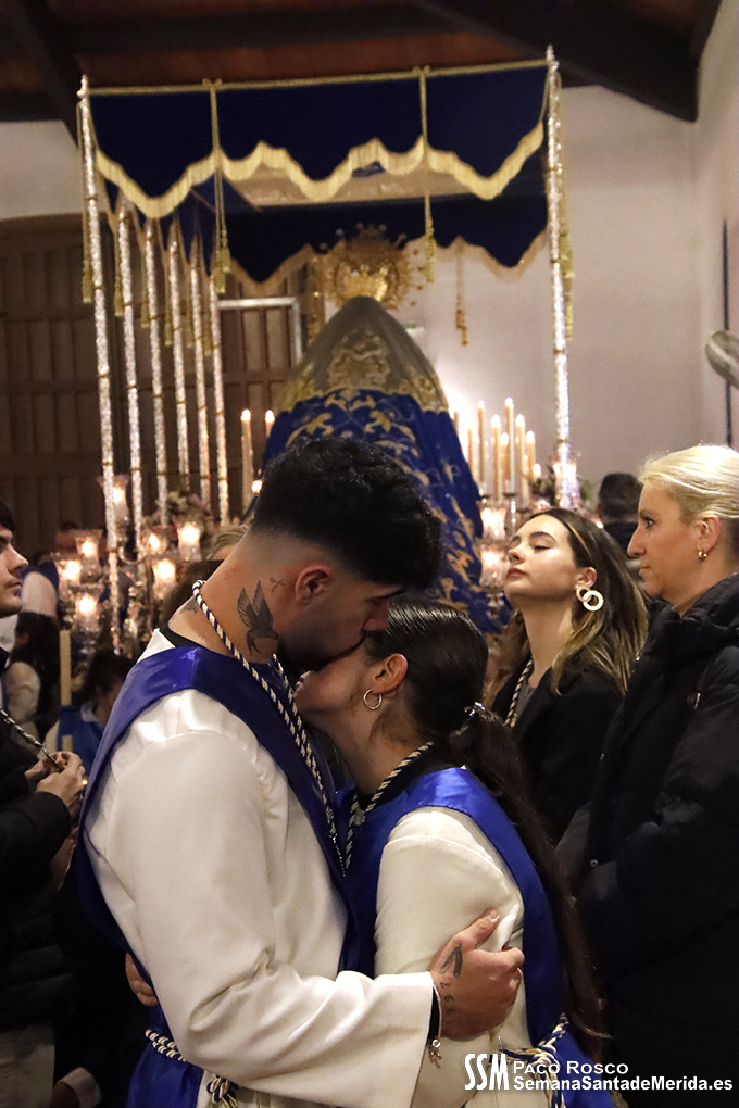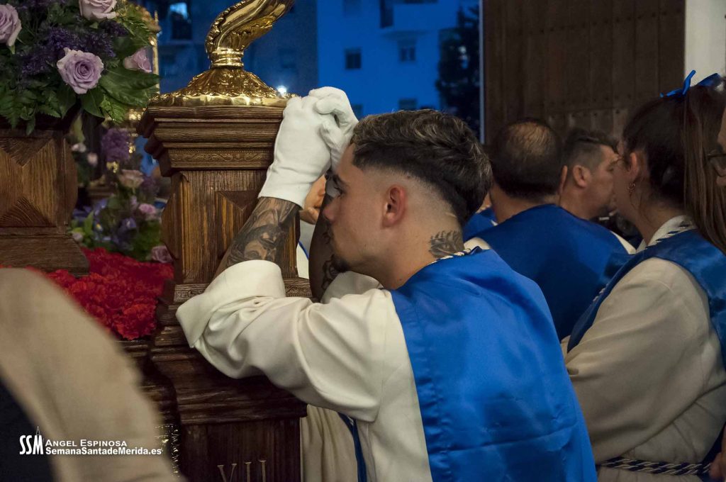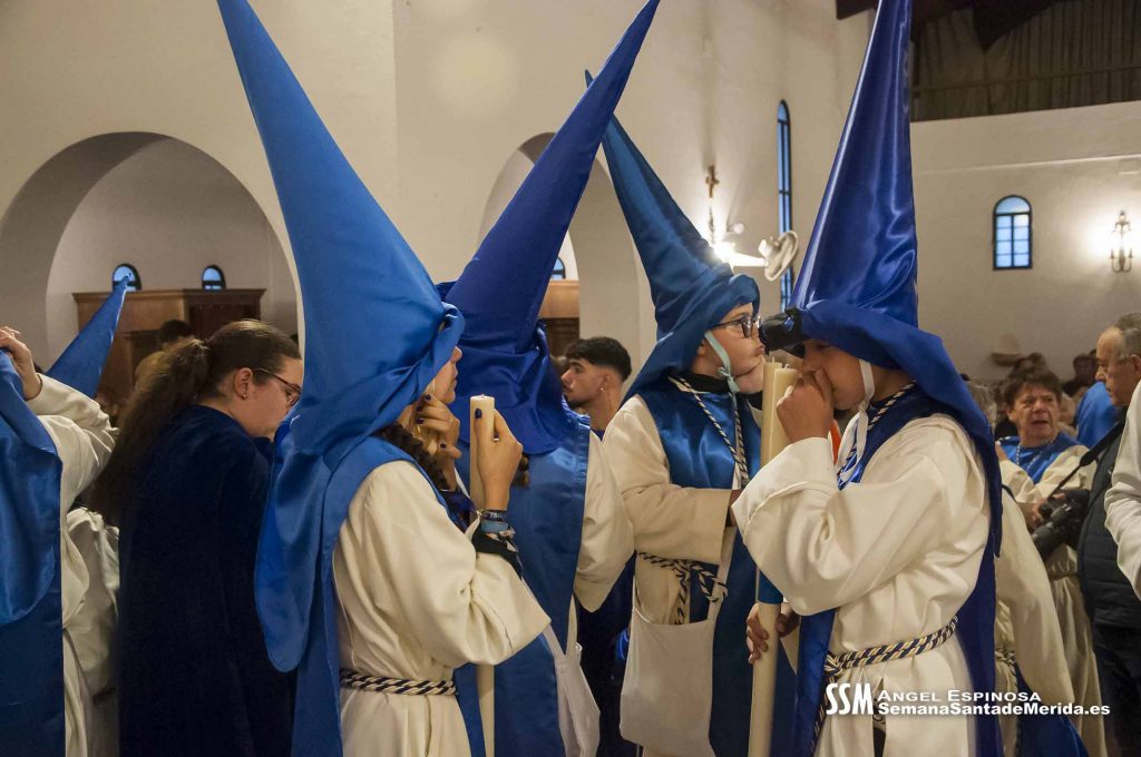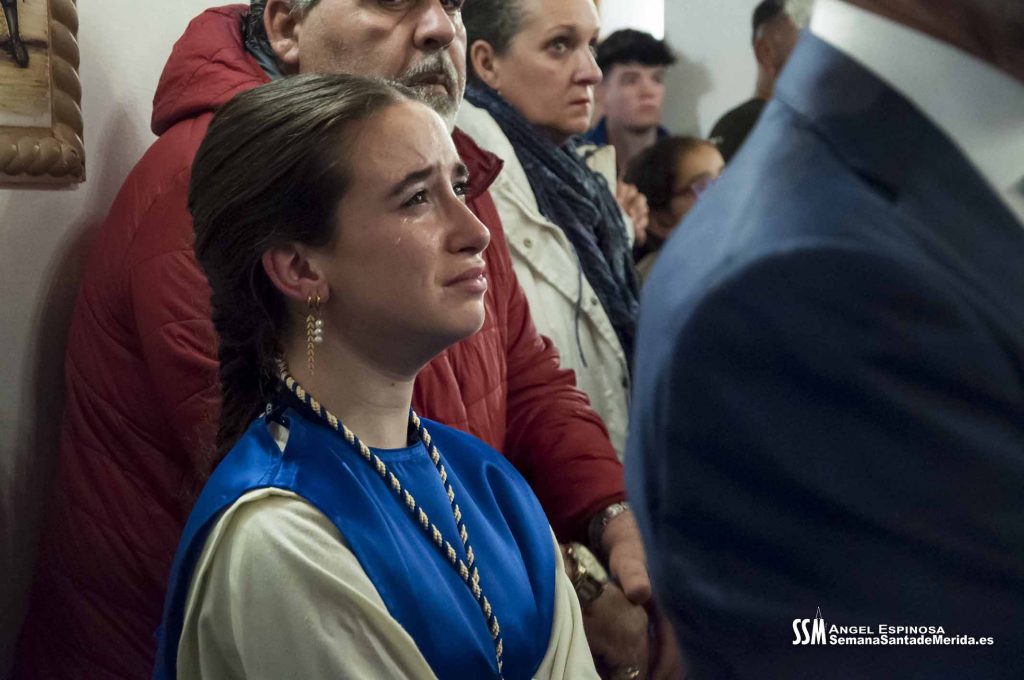 Instantes de tristeza, de nostalgia. Las lágrimas se apoderaron del momento. Y es que Mérida se iba a quedar sin ver a ese manto azul que le abraza cada Miércoles Santo. Tampoco iban a ver a la caballería que les acompaña junto con el Cuerpo Nacional Policía, ni la ilusión de los nazarenos más pequeños, ni la de los más veteranos. Así, su barrio, Nueva Ciudad, y sus vecinos se iban a quedar huérfanos durante un año entero.