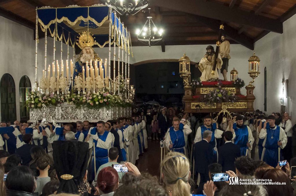 Lluvia y aire. Más lluvia. Más aire aún. Se acercaba la tarde y seguía el tiempo sin acompañar. Ni los más optimistas las tenían todas consigo. Ver al Señor de las Tres Caídas y a Nuestra Señora de la Misericordia procesionar por las calles de Mérida se antojaba difícil.