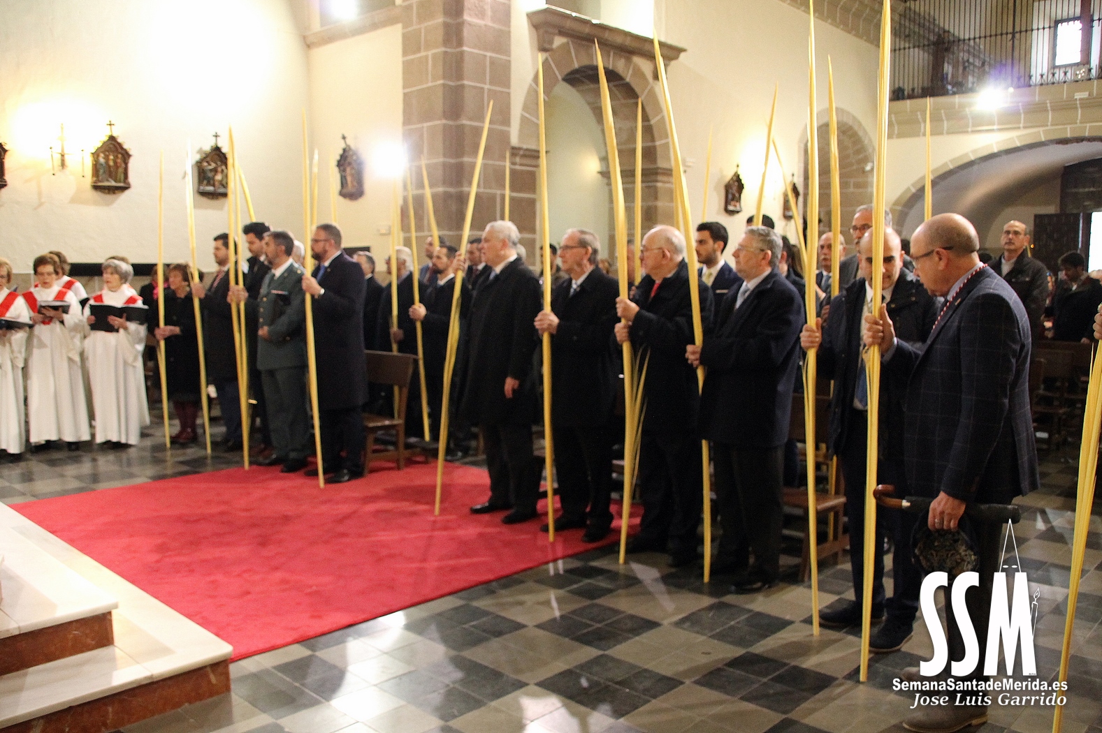 Desde primera hora de la mañana decenas de emeritenses y turistas se acercaban a la parroquia de la calle Almendralejo para recibir su rama de olivo bendecida. Las autoridades llegaban puntuales a la iglesia para comenzar uno de los actos más tradicionales de la Semana Santa de Mérida y que supone el punto de partida de esta semana de Pasión.