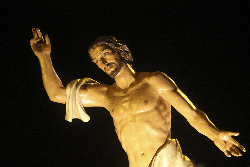 Y quienes mejor que los niños y jóvenes para dar testimonio de vida, alegría y esperanza, ellos son los protagonistas de la procesión de esta noche, y con los caramelos y golosinas que entregan durante su recorrido nos hacen llegar ese testimonio. Esta es una procesión alegre, y los nazarenos salen a la calle sin capirote, ni cubrerostro, mostrando la felicidad con sus sonrisas. Tres pasos procesionarán esta madrugada. El primero, tras la Cruz de guía, será San Juan Evangelista (obra de Juan Blanco Pajares), portado por costaleras de la Cofradía Ferroviaria, y que en sus manos sostiene un pergamino enrollado cuyo contenido ignoramos. El segundo, Jesús Resucitado (talla de Eduardo Zancada) portado a varal por portadores de la Cofradía de los Castillos, que en su salida lo alzan sobre una mano. El tercero, lleva la imagen de Nuestra Señora del Mayor Dolor (obra de Manuel Echegoyán) portada también por costaleros de los Castillos.