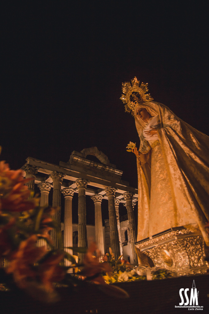 La madrugada va ganando la partida y el cortejo avanza por la Plaza de España. Mérida celebra con júbilo la resurrección para que, en la mañana del Domingo, nos despertemos con la alegría de haber conocido la buena nueva.