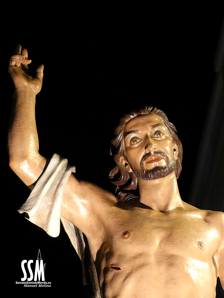 Mérida celebra la resurrección de Cristo desde el minuto uno. Así, en la medianoche, el atrio de Santa Eulalia anuncia con fuegos artificiales que el sepulcro está vacío, que Cristo ha vencido a la muerte y que ha vuelto a la vida, que el templo se destruyó y lo levantó en tres días. Cristo resucita en Santa Eulalia para toda Mérida y toda Mérida se rinde a los pies del hercúleo Resucitado de Zancada que, en señal de victoria, sale a la Avenida de Extremadura alzado por sus jóvenes portadores.