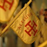 Hoy los cubrerrostros se transforman en las sonrisas de todas y todos los hermanos que procesionan. Algunos portando cada uno de los tres pasos que salen a la calle en esta extraña mañana de Domingo de Resurrección, y otros con la bandera donde se expresa el grito por el Resucitado: Aleluya.