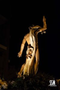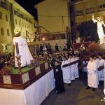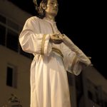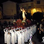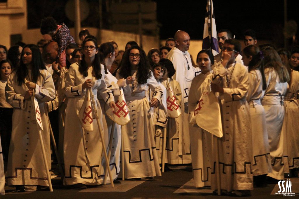 Abre el cortejo San Juan de los Ferroviarios que comienza el camino hacia el encuentro con María, del Mayor Dolor, y con Jesucristo Resucitado para aportar su Aleluya entre sus manos por toda la procesión.