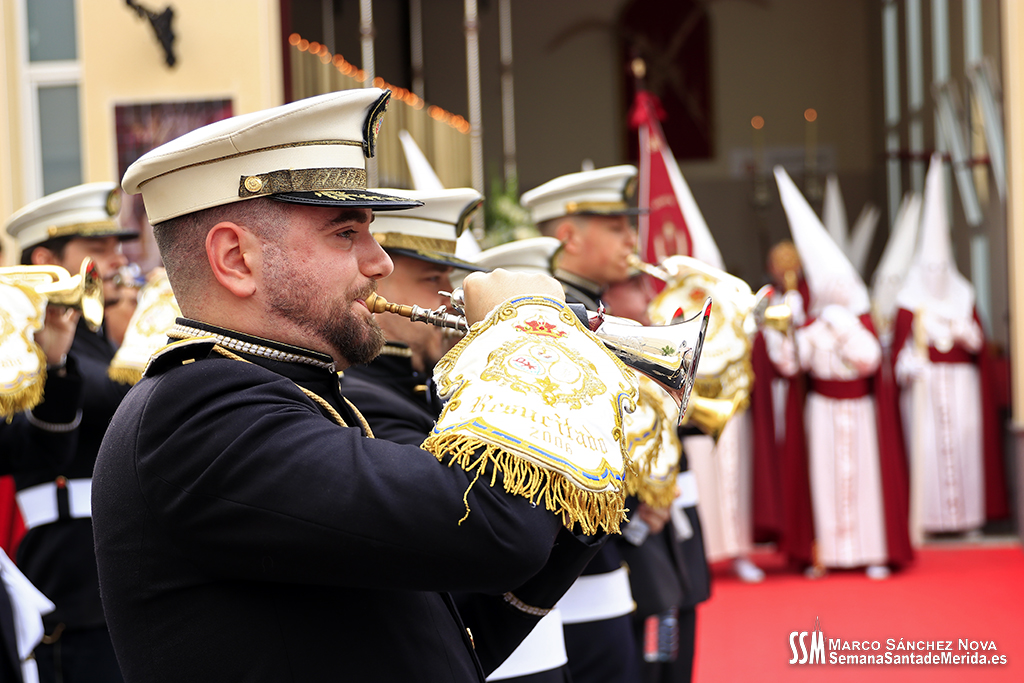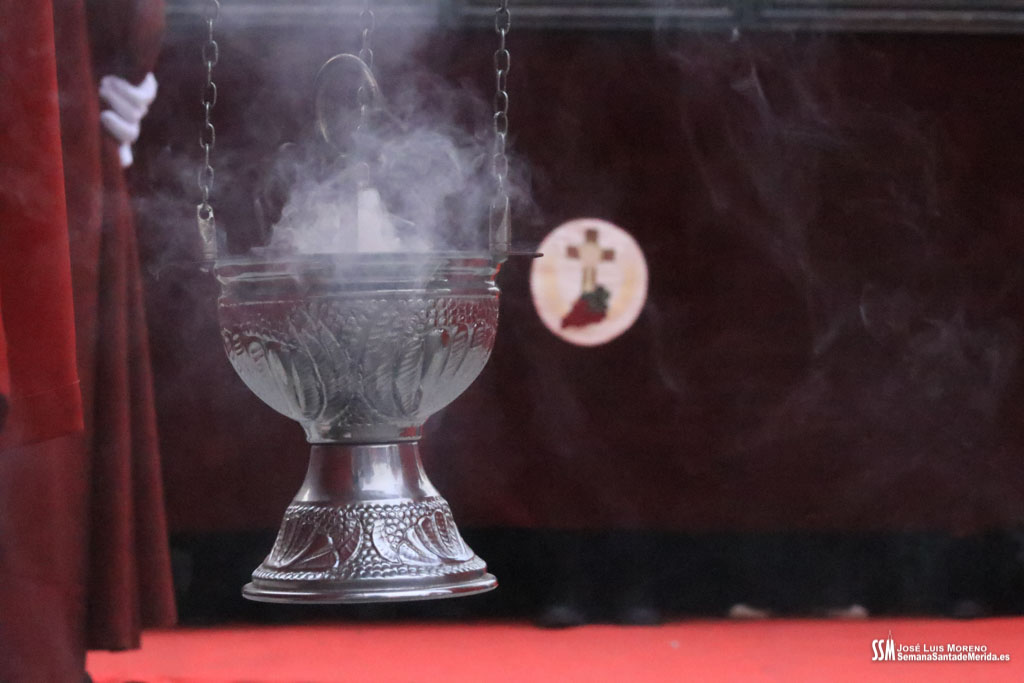 Los capirotes de color granate conquistan las calles de Argentina, exhibiendo sus señas de identidad y su profundo espíritu de recogimiento. En San José, tras meses de preparación, el Señor del Amor retorna a Mérida con su mirada llena de ternura. A pesar de tener a sus amigos a su alrededor, él es consciente de que el final se acerca inevitablemente