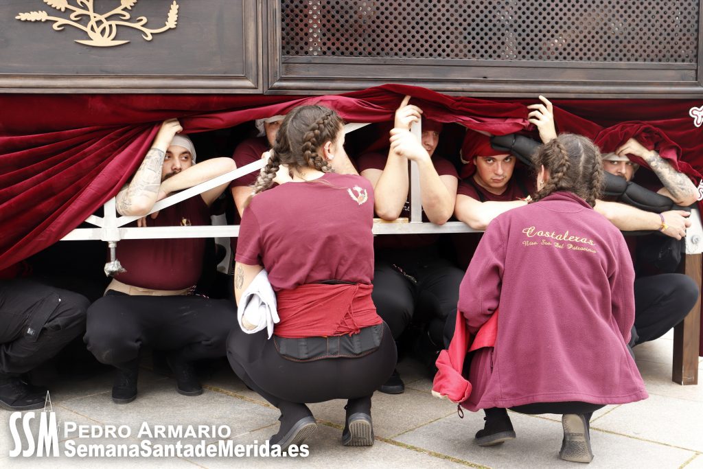 Cuarenta y cinco costaleros mecen con devoción la Sagrada Cena bajo la dirección de Juan Manuel Carvajal. Tras ella, llega el turno de Nuestra Señora del Patrocinio, con un grupo de treinta y cinco costaleras que, bajo el paso, derrochan destreza a lo largo de todo el recorrido, con José Antonio Llano y Tania del Rio al frente.