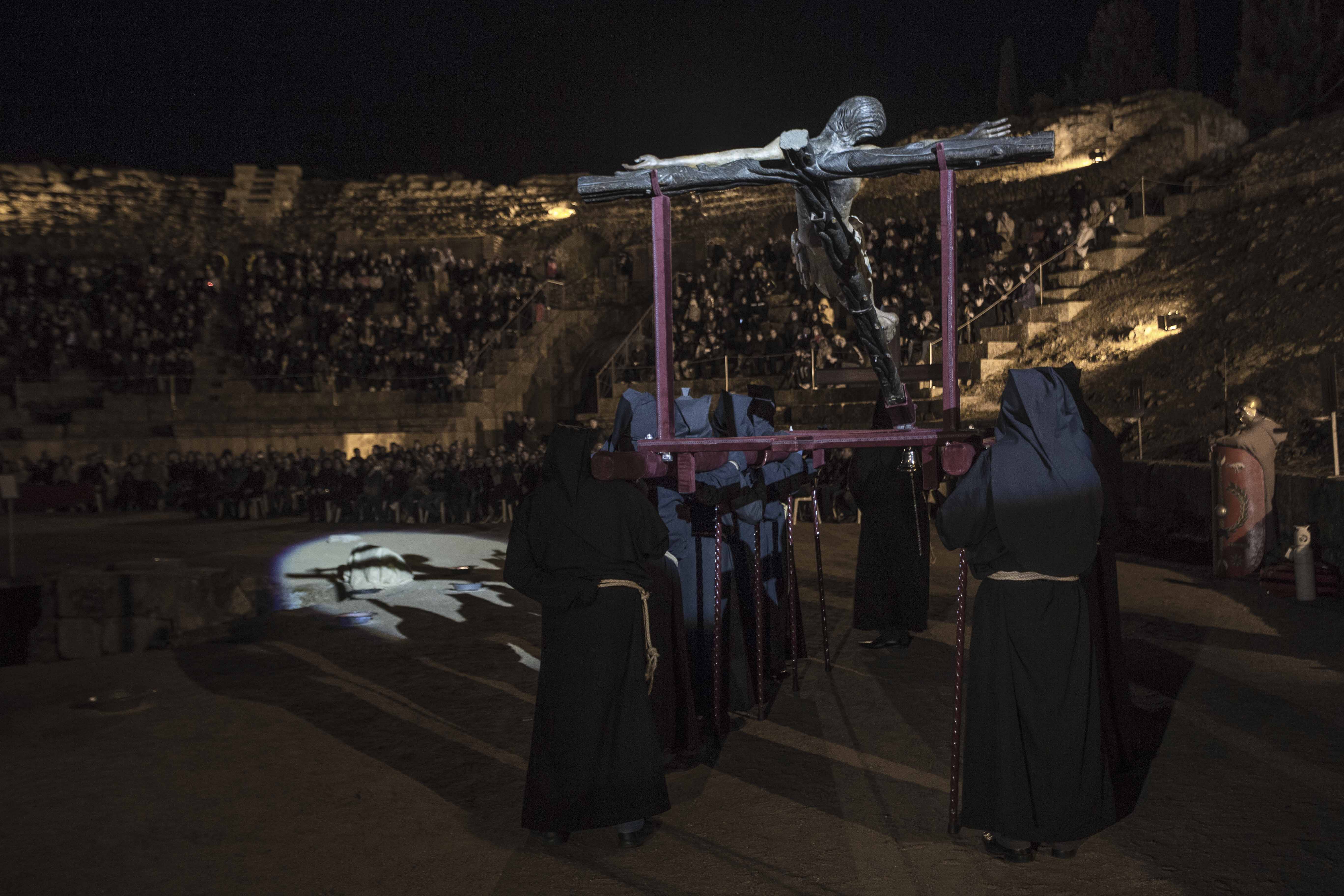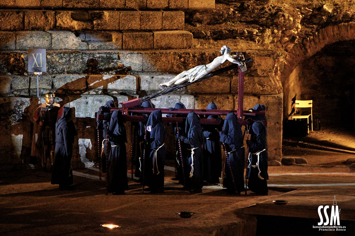 La tensión era palpable. Las idas y venidas. Las consultas en el móvil… redes sociales, partes meteorológicos. A la una de la mañana afloraban las primeras sonrisas. ¡Parece que va a salir!. El Cristo de la O hará su desfile hasta el anfiteatro para rezar el Vía Crucis…No podía ser!!!…no iba a renunciar a pisar la arena del Anfiteatro, lecho de oraciones de tanto cristianos primitivos, por segundo año consecutivo y menos en este 2019…en el que su imponente talla, el sobrecogedor acto que protagoniza y la contemporaneidad de los escenarios, emergió sobre vía crucis administrativos para hacer un regalo, en forma de Declaración de Interés Turístico Internacional, a todos los emeritenses.