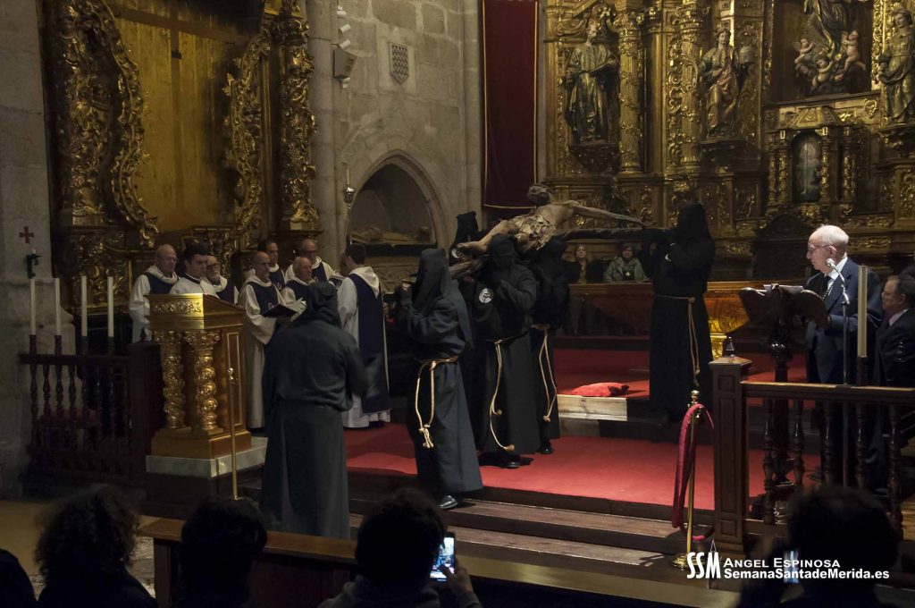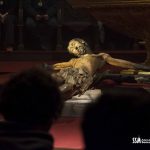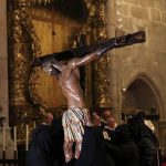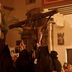 Llega el momento y la nave central de la Concatedral queda a oscuras y al momento la imagen del Stmo. Cristo de la O se alza frente a todos los presentes que pueden contemplarlo más cerca que nunca. No hay tambor ni campana, solo la lectura de las Sagradas Escrituras, una reflexión y una oración que da paso, Estación tras Estación, al canto llano de la Capilla Gregoriana que alterna cantos de la Liturgia Romana con la Hispano-Mozárabe.