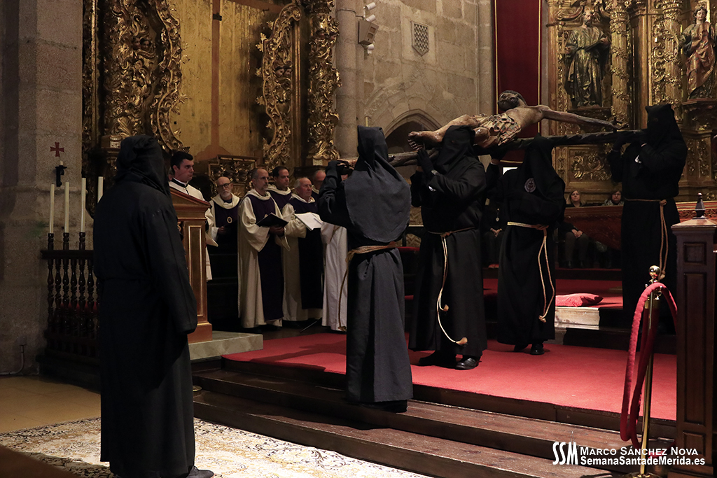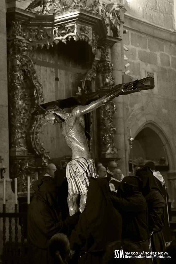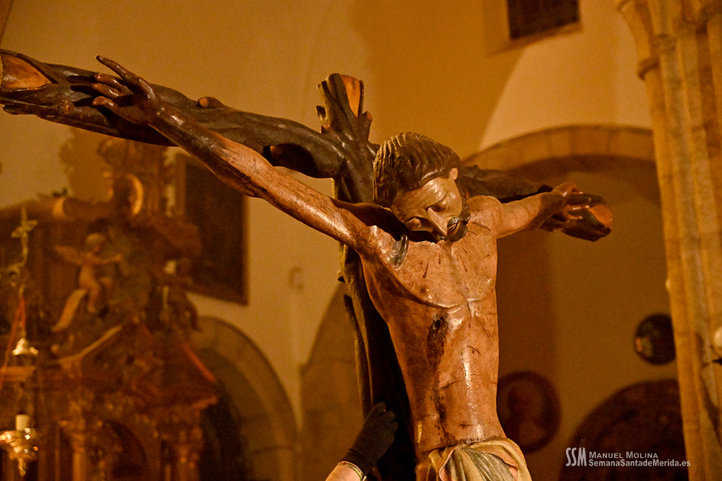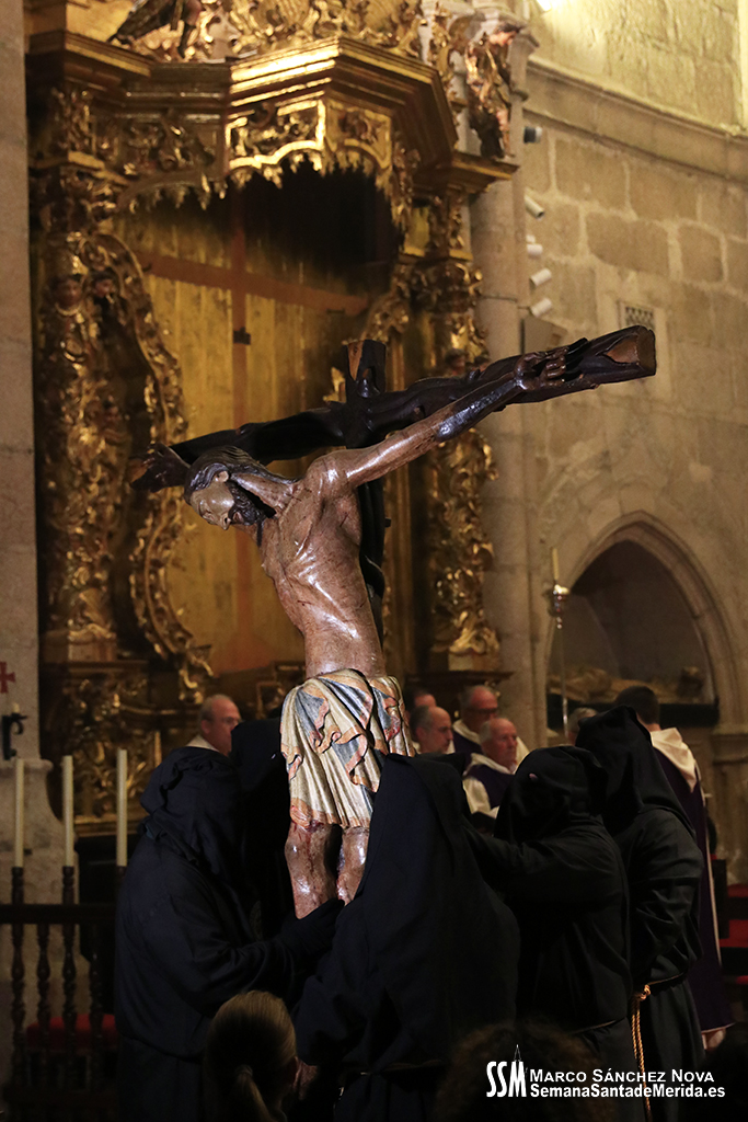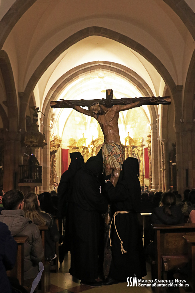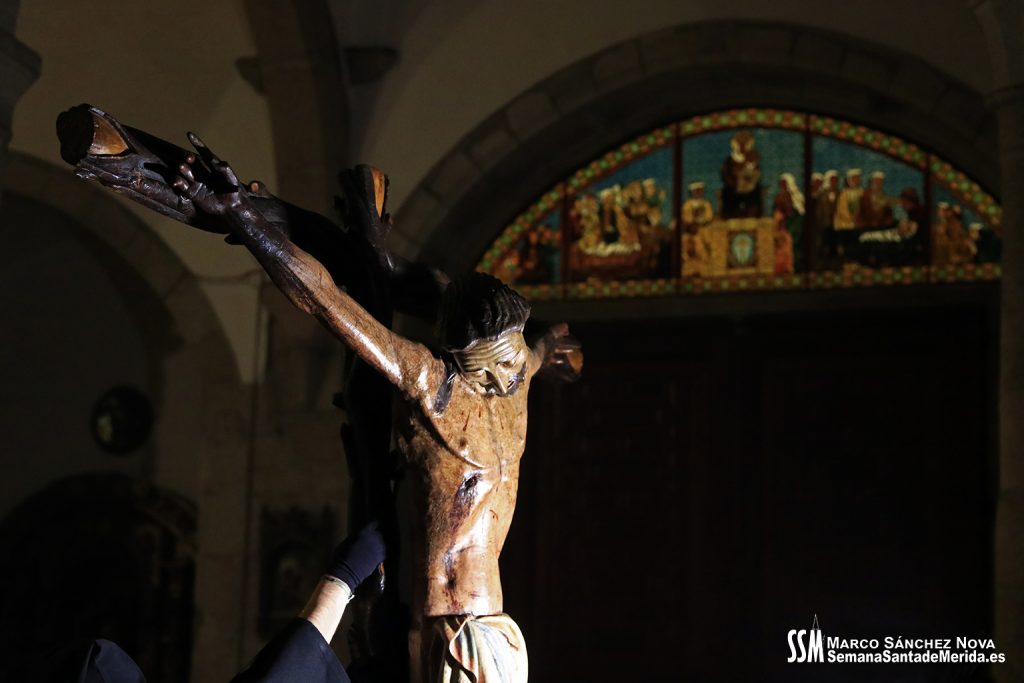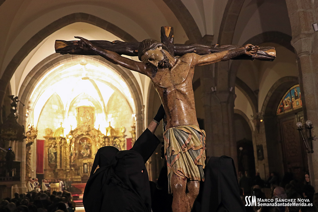 El tiempo lluvioso e inestable que ha echado por tierra gran parte de las estaciones de penitencia de esta Semana Santa de 2024 había llevado, hacía ya más de 24 horas, a la Junta de Cofradías de Mérida a tomar una importante decisión con el fin de garantizar la seguridad de todos los participantes en la estación de penitencia y el Vía Crucis del Anfiteatro Romano: el Stmo. Cristo de la O y su cortejo procesional no saldrían a la calle y el Vía Crucis se celebraría en la Concatedral de Santa María.