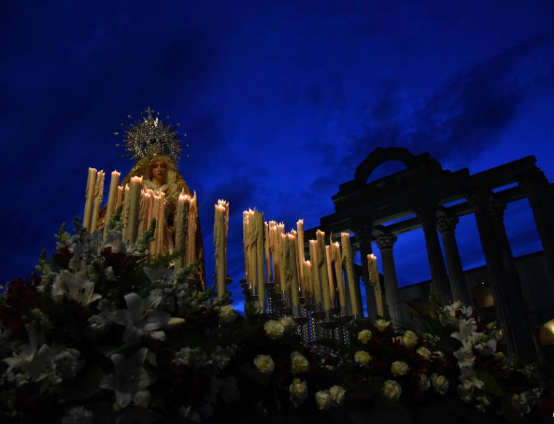 CRÓNICA LUNES SANTO 2019 Fecha:15 de abril de 2019 Redactor:Luis Miguel González Pérez Fotografías: Marco Sánchez NovaManuel MolinaFrancisco Rosco “La procesión está en la calle, y en su deambular por Mérida, el penitente dirige su mirada permanentemente a la azotada espalda de su Cristo de