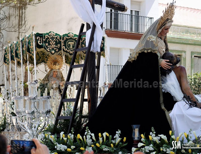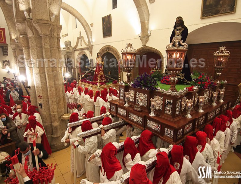 La Calle Calvario se tiñó de todos los colores habidos en la paleta del mejor pintor. Esos colores que aportan las hermandades de Mérida que, como marca la tradición (y la obligación), acuden al entierro de Cristo.