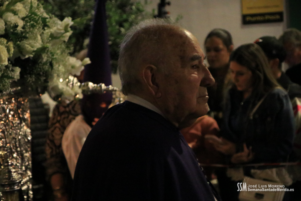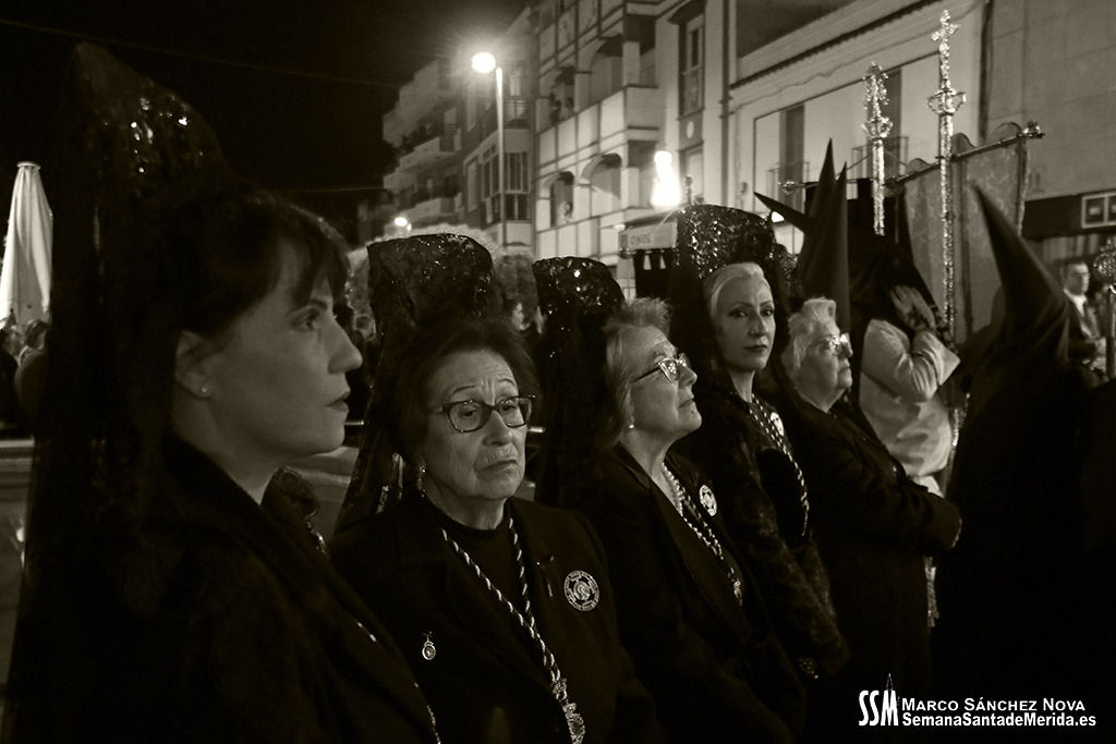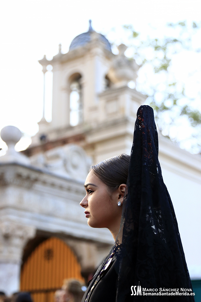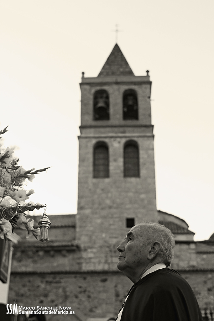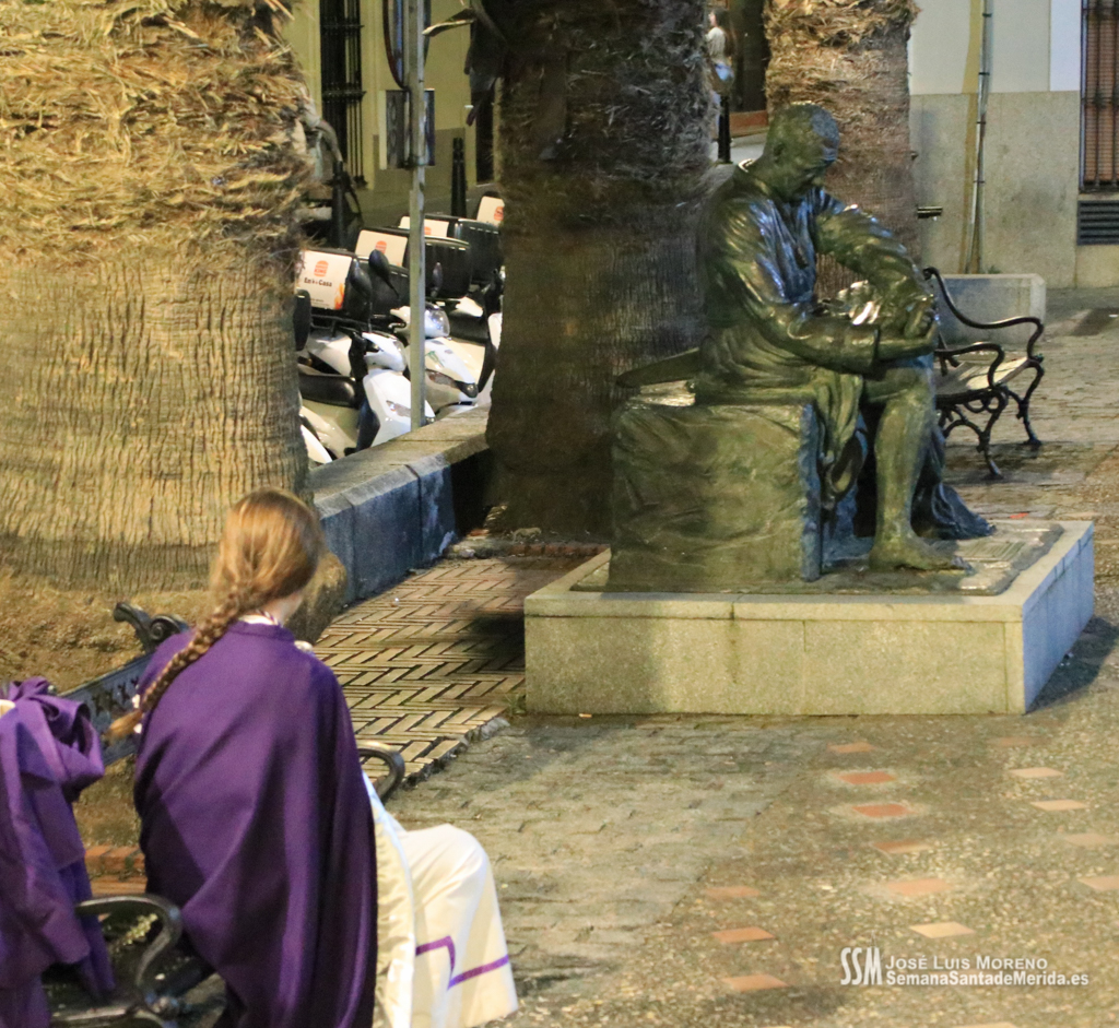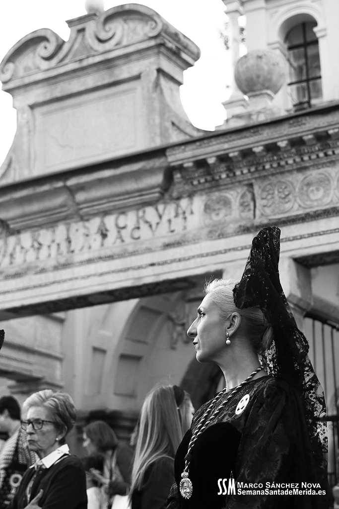Pellizco cuando reparas en esa mayordomía extraordinaria de la Virgen del Mayor Dolor… No sé si serán 80. Tampoco lo he preguntado  pero, qué  ejemplo de vida ver que sigue ahí! Prudente. Ahora las más de las veces junto  a la esquina delantera o en la lateral del paso.  Pendiente siempre de lo que pasa. Dónde debe estar, pero también en unos metros más alante…entre las  señoras de mantilla, peineta y rosario. Pareja indispensable, ineludible en la Semana Santa emeritense. Ojalá ese pellizco que yo siento fuera generalizado. Vete a buscarla! Majestuoso ejemplo!!!  No sé si la Semana Santa emeritense algún día os rendirá el homenaje que os merecéis, pero… Vaya pellizco de amor, de respeto, de convivencia, de … Madre! Quiero ser como ellos!