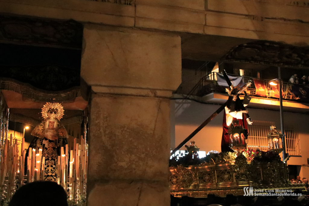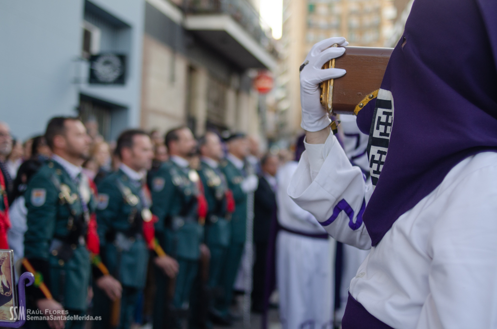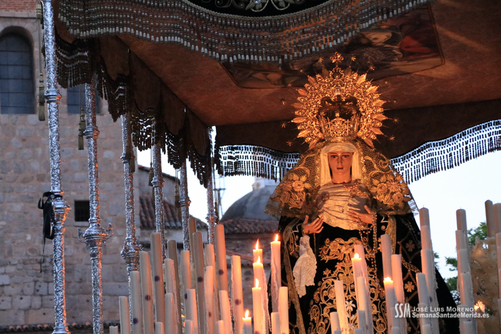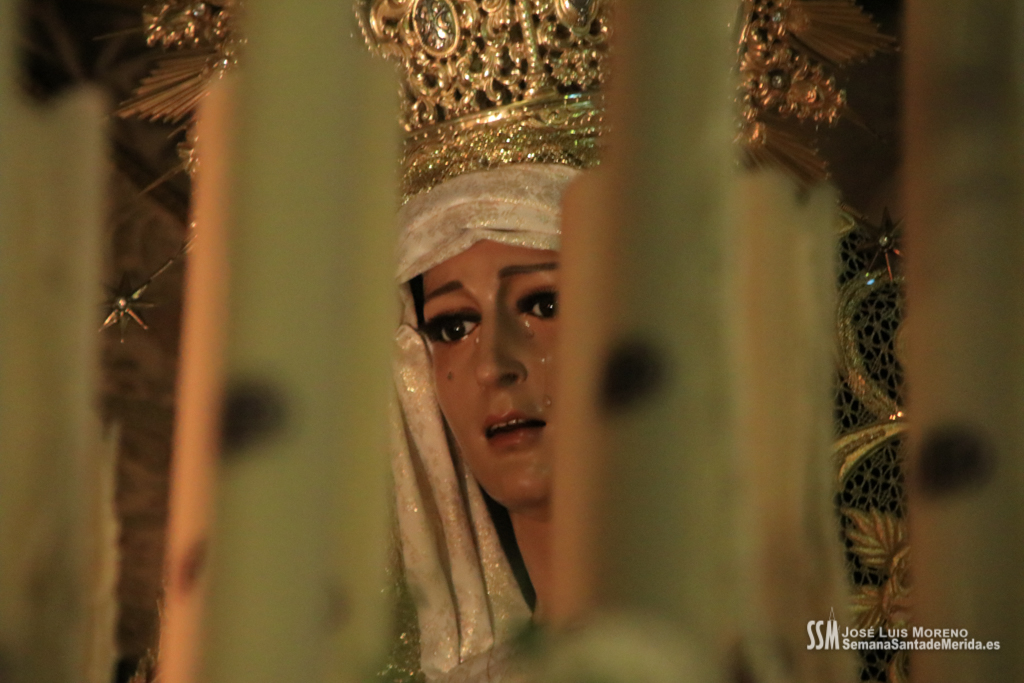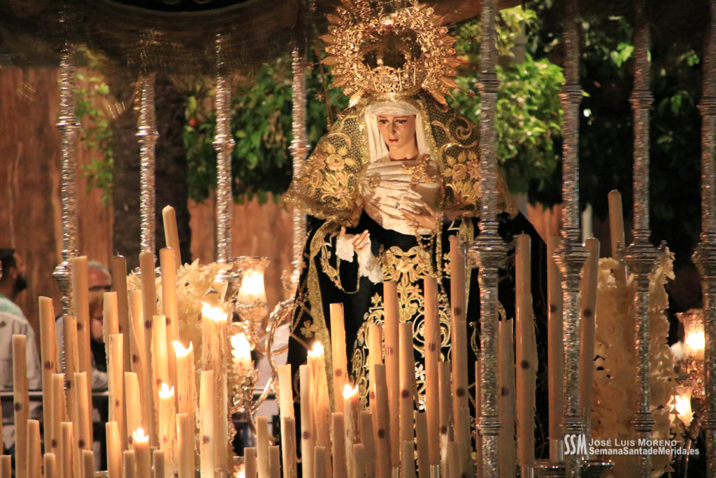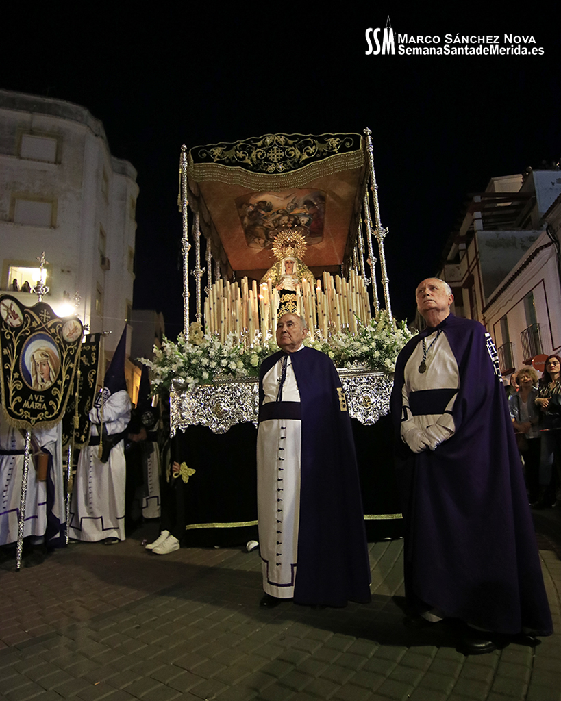 Pellizco cuando reparas en esa mayordomía extraordinaria de la Virgen del Mayor Dolor… No sé si serán 80. Tampoco lo he preguntado  pero, qué  ejemplo de vida ver que sigue ahí! Prudente. Ahora las más de las veces junto  a la esquina delantera o en la lateral del paso.  Pendiente siempre de lo que pasa. Dónde debe estar, pero también en unos metros más alante…entre las  señoras de mantilla, peineta y rosario. Pareja indispensable, ineludible en la Semana Santa emeritense. Ojalá ese pellizco que yo siento fuera generalizado. Vete a buscarla! Majestuoso ejemplo!!!  No sé si la Semana Santa emeritense algún día os rendirá el homenaje que os merecéis, pero… Vaya pellizco de amor, de respeto, de convivencia, de … Madre! Quiero ser como ellos!
