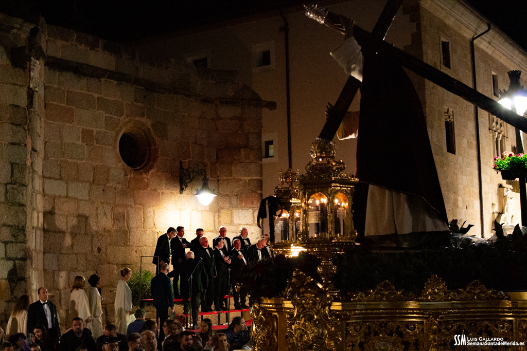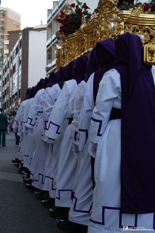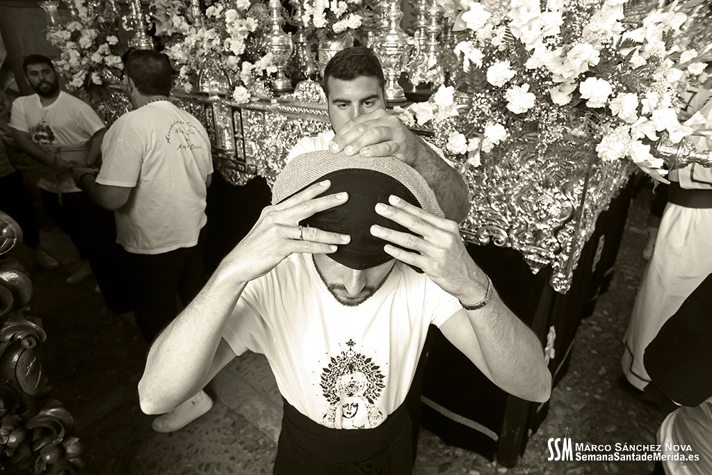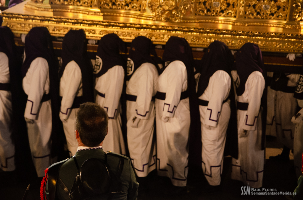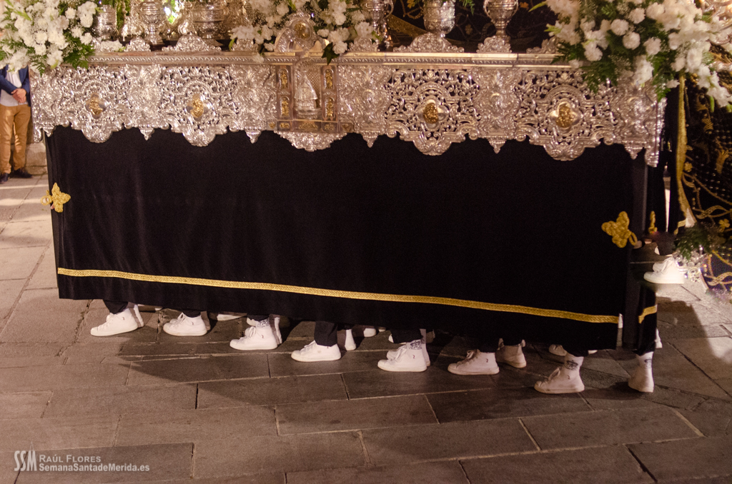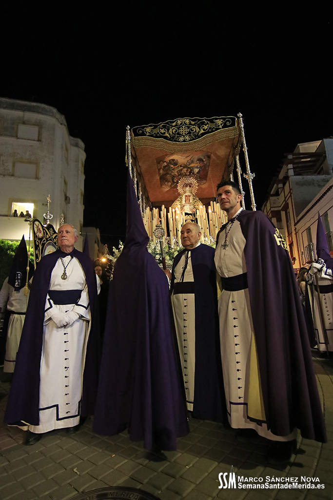 Pellizco cuando reparas en esa mayordomía extraordinaria de la Virgen del Mayor Dolor… No sé si serán 80. Tampoco lo he preguntado  pero, qué  ejemplo de vida ver que sigue ahí! Prudente. Ahora las más de las veces junto  a la esquina delantera o en la lateral del paso.  Pendiente siempre de lo que pasa. Dónde debe estar, pero también en unos metros más alante…entre las  señoras de mantilla, peineta y rosario. Pareja indispensable, ineludible en la Semana Santa emeritense. Ojalá ese pellizco que yo siento fuera generalizado. Vete a buscarla! Majestuoso ejemplo!!!  No sé si la Semana Santa emeritense algún día os rendirá el homenaje que os merecéis, pero… Vaya pellizco de amor, de respeto, de convivencia, de … Madre! Quiero ser como ellos!