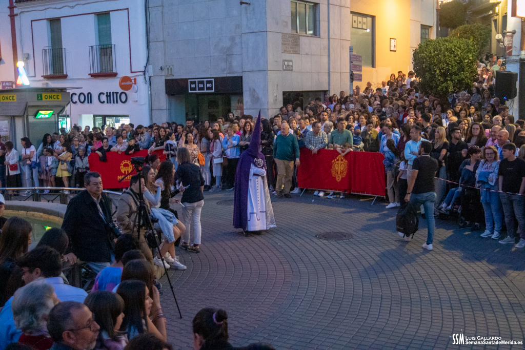 Y lo ves…Viene el pellizco en forma de zancada, tantas veces cantada, cuando se entrega  por completo a Mérida…vaya tela con el respingo!  Y luego otro cuando ves esas filas de penitentes, felizmente engrosadas este año, compartiendo voluntariamente su Pasión. Y sigue el pellizco cuando, ahora sí, el ‘todo Mérida’ acompaña a su Madre en El Encuentro.  O cuando todo el mundo le aclama al llegar a la Plaza de España, camino adoquinado que sabe a Gloria, porque –imagino- el del Calvario fue otra cosa.