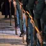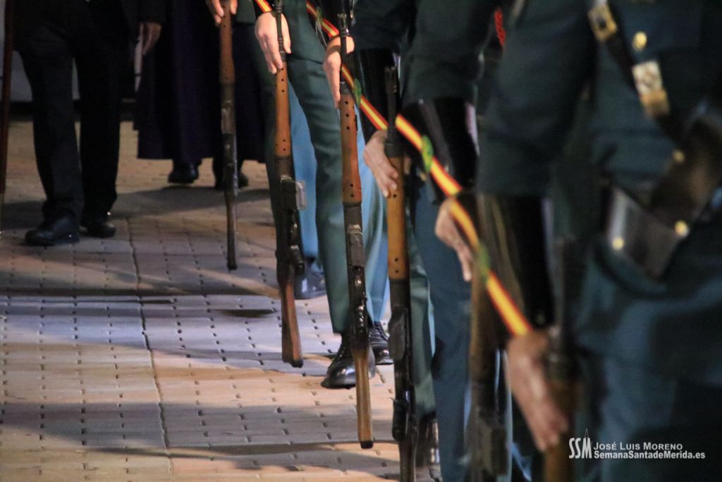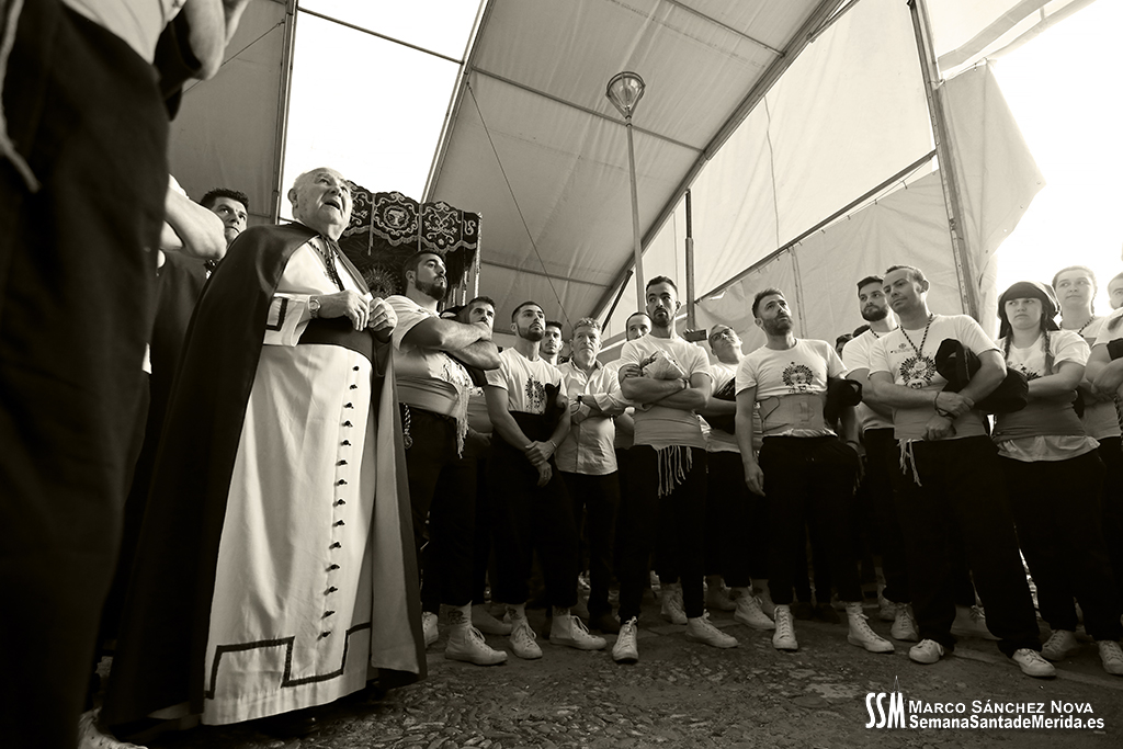 Pellizco cuando,  llegados a Santa Eulalia,  las órdenes del mando de turno de la Guardia Civil, Hermanos de Honor de la Cofradía , y muchos además hermanos de Mérida, se entremezclan con los sones de  la banda de la OJE.
