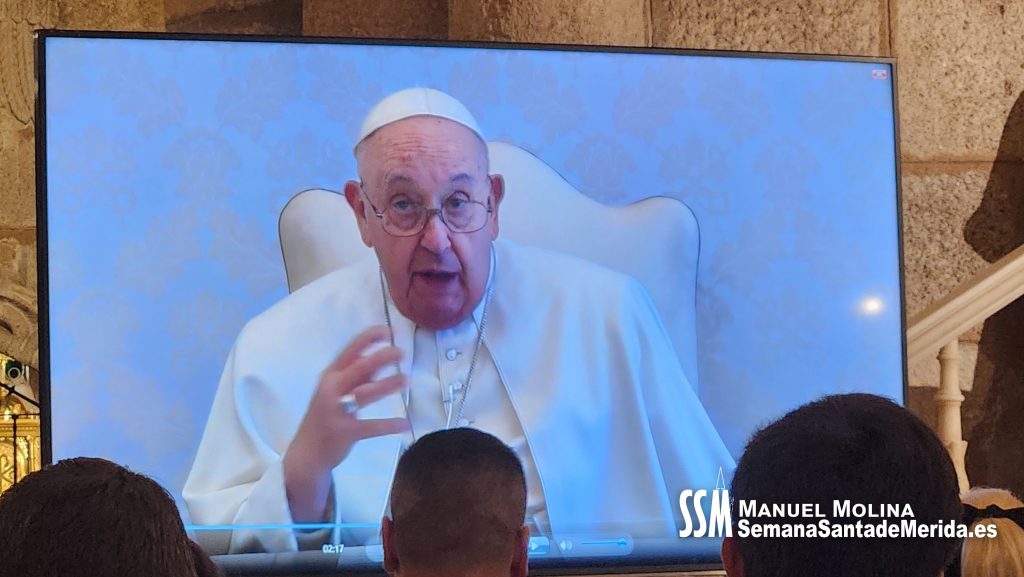 - Se trata de la primera vez que un Sumo Pontífice participa en un acto de Semana Santa fuera de la ciudad de Roma con un videomensaje dirigido a los y las cofrades en particular, así como a la ciudad de Mérida en general.