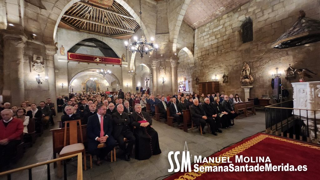 Al finalizar la intervención del Papa, con un sonoro aplauso en la abarrotada Basílica de Santa Eulalia, la pregonera le ha agradecido el “haber entrado en la historia de la Semana Santa de Mérida. Gracias por habernos dedicado este tiempo, y por tener a Mérida en su corazón”.