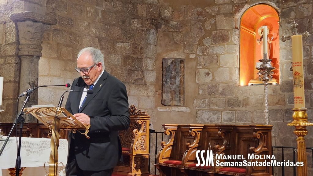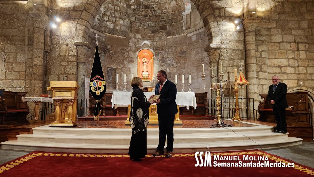 Por ello, ha agradecido “este regalo que nos has hecho esta noche con tu pregón porque es impagable. Por nada en el mundo hubiera imaginado, y creo que todas y todos, que traerías a tu pregón al propio Santo Padre con ese mensaje, cargado de fuerza, hacia la ciudad de Mérida, afirmando, además, que nuestra ciudad es la Cuna del Cristianismo Hispano, algo que venimos reivindicando durante años y por cuyo reconocimiento seguimos trabajando”.