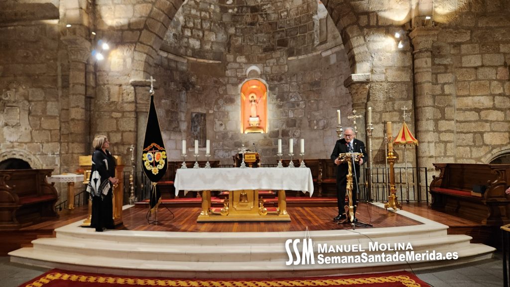 La pregonera ha recordado e hilado a todas las hermandades y a toda la imaginería de la ciudad en un texto plagado de anécdotas de viaje pontificios y de su propia experiencia hasta finalizar alentando a las hermandades a dejarse “sorprender por la novedad que sólo Cristo puede dar y expresa, siente, reza y vive la alegría del Resucitado. Sal a los caminos para anunciar que el sepulcro no ha tenido la última palabra. Es hora de convertirse en testigos, honrando a quienes ya no están aquí y tanto echamos de menos. Proteged vuestra Semana Santa tal como hicieron vuestros mayores. Nazarenos, Cofrades, Hermanos: ¡Mérida os está esperando!”, ha concluido.