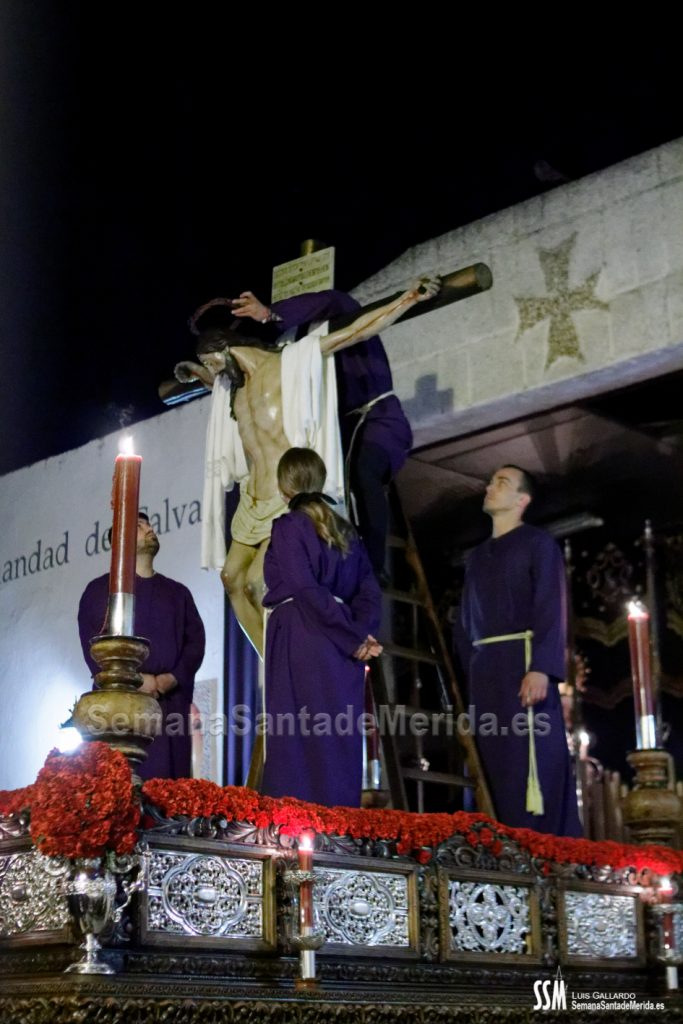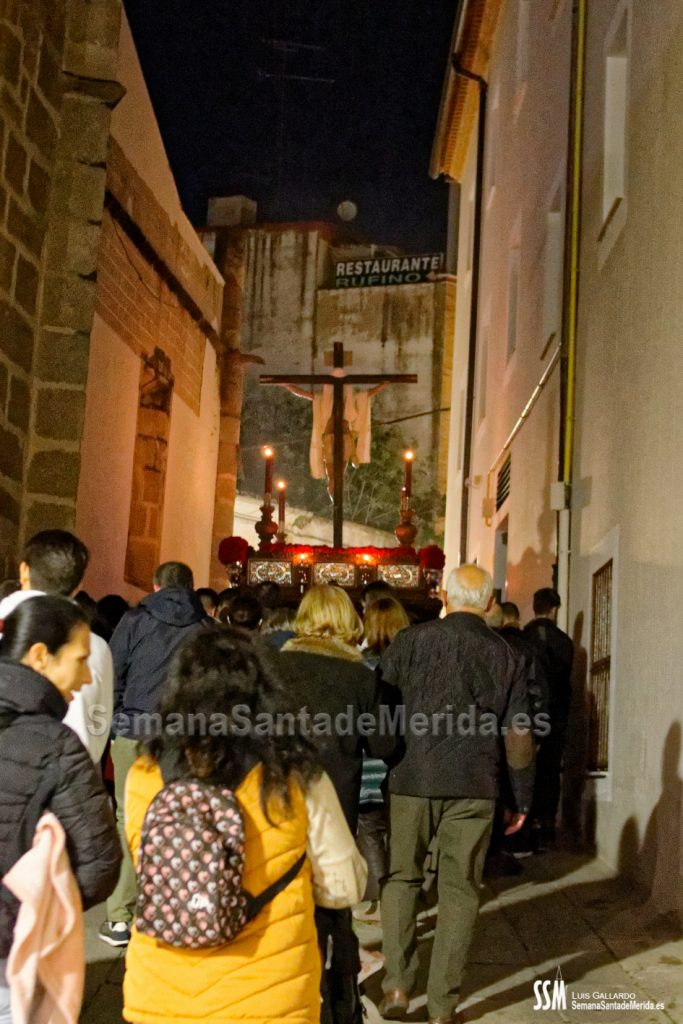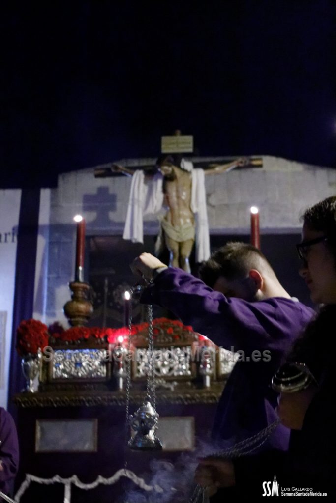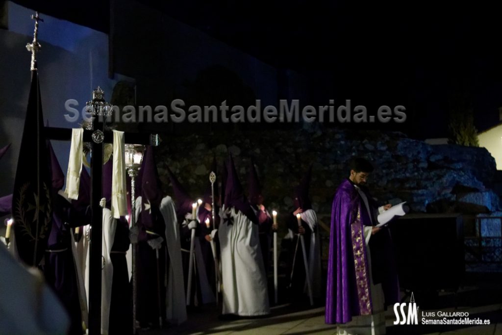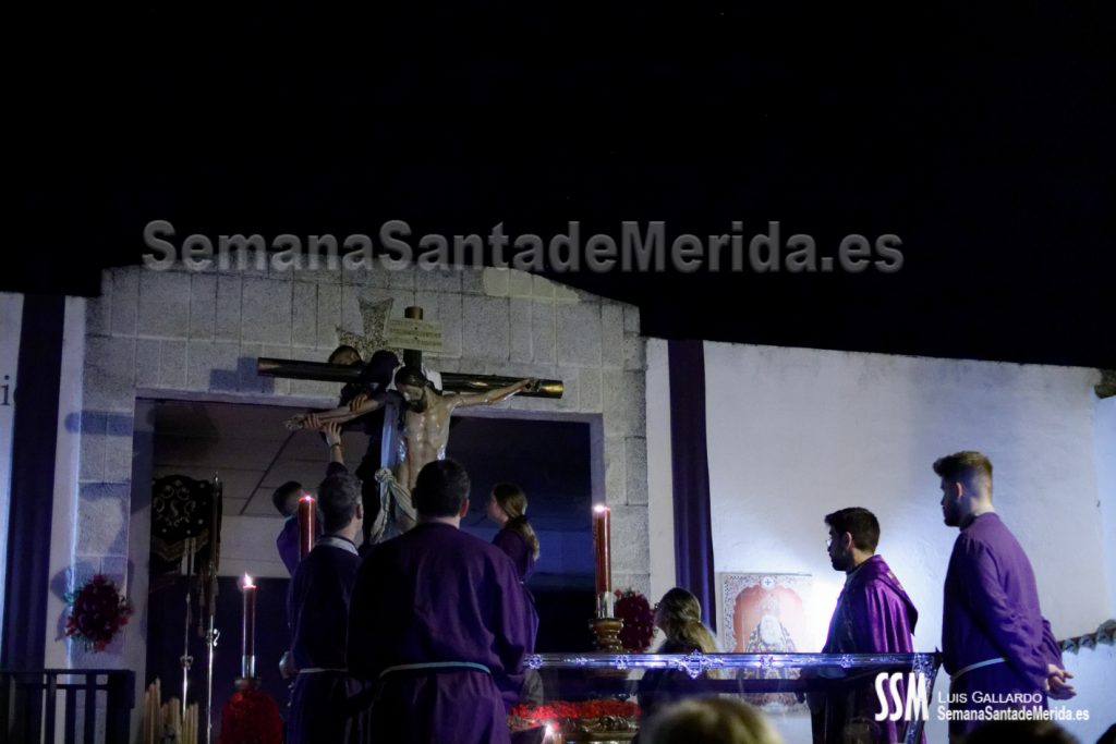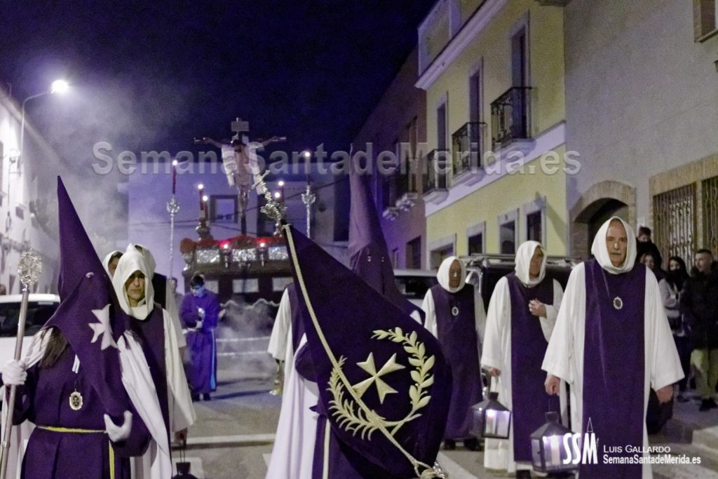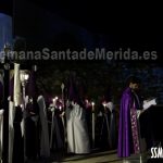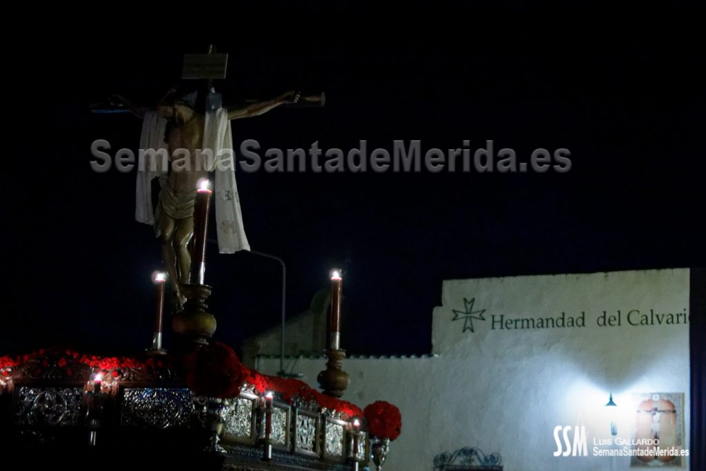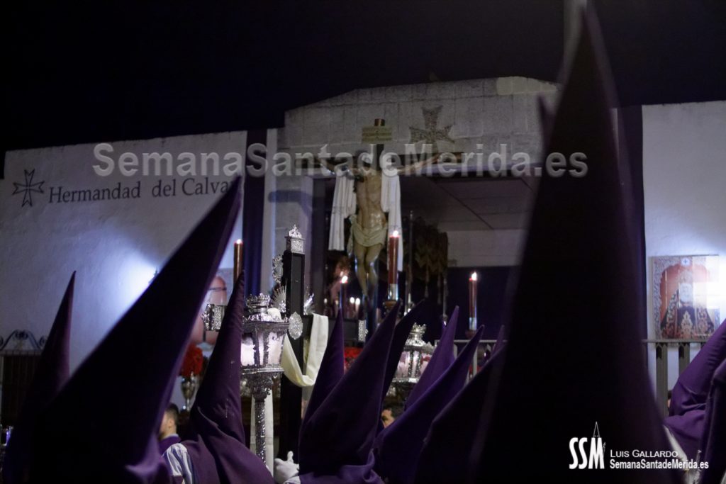 Procesión pequeña, sin alboroto ni parafernalia, desnuda de cualquier impostura: auténticamente emeritense. Así es como el Stmo. Cristo del Calvario se presenta cada madrugada del Viernes Santo en Mérida.