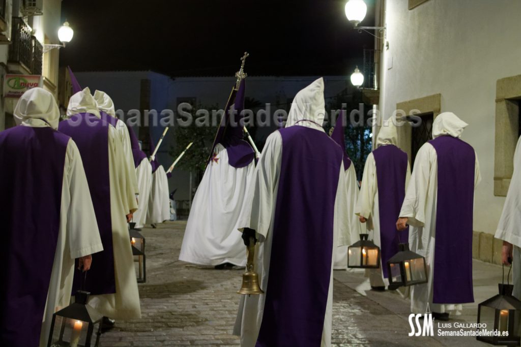 Suena la campana de la Ermita y los nazarenos se disponen a comenzar su estación de penitencia. Tras realizar el voto de silencio, comienzan su caminar para alumbrar las calles oscuras y vacías de la ciudad. La palabra deja paso durante unas horas al sonido constante de la campana, que anuncia a la ciudad y al mundo, que el Hijo de Dios ha sido crucificado.