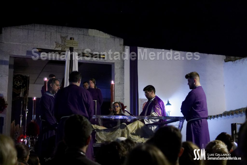 Cuatro hermanos cofrades sostienen ahora el cuerpo para depositarlo en la urna en la que descansará hasta la hora en que, esta vez sí, toda la ciudad con sus calles repletas de gente, acoja el Santo Entierro del Señor.
