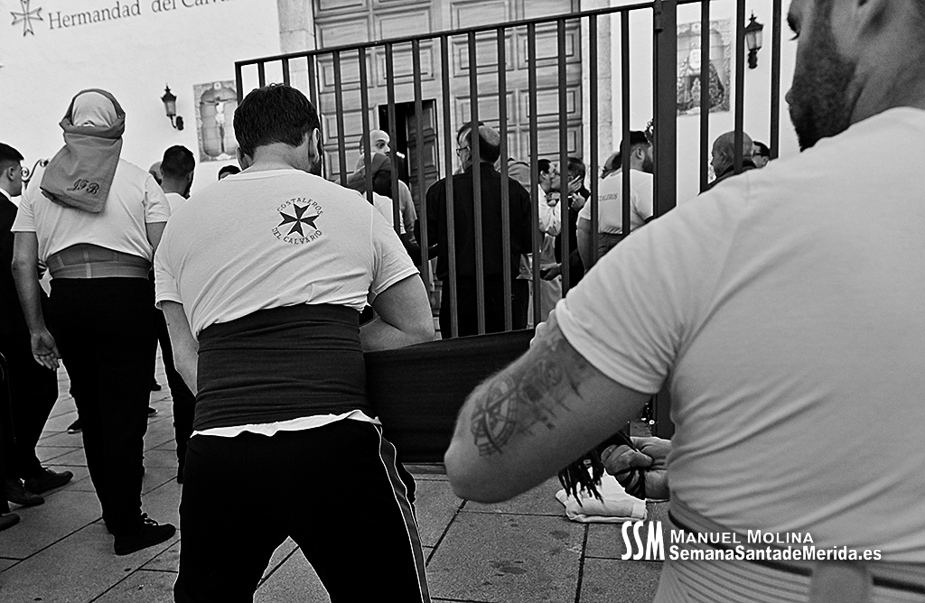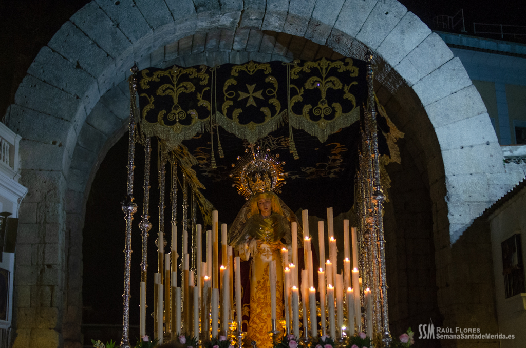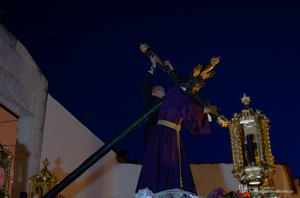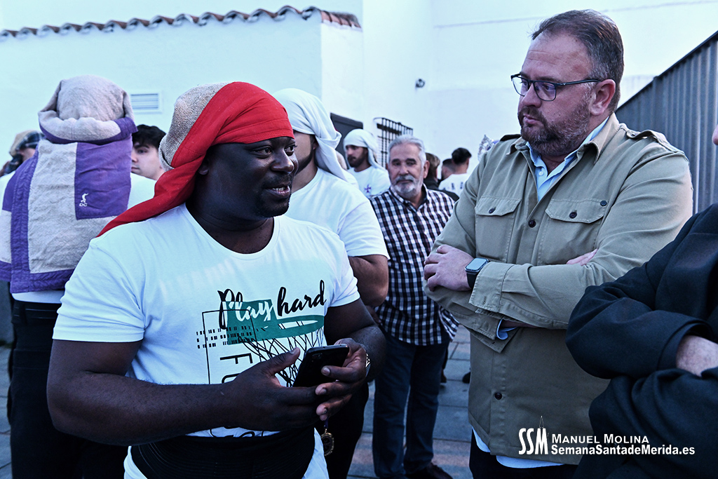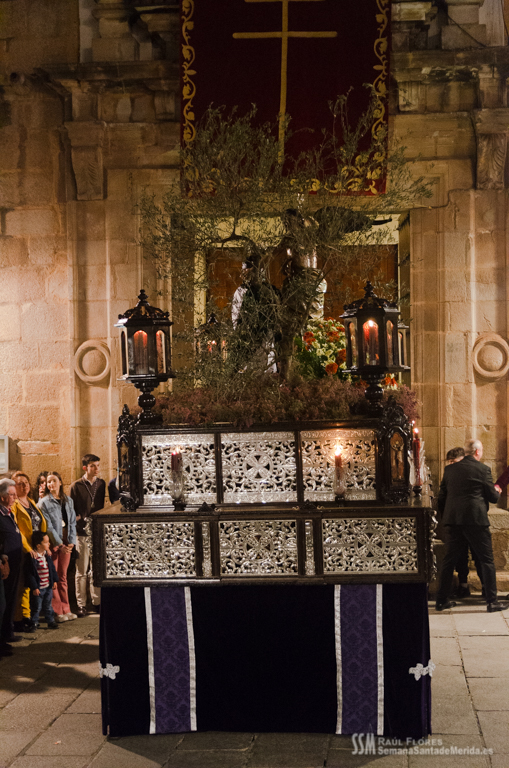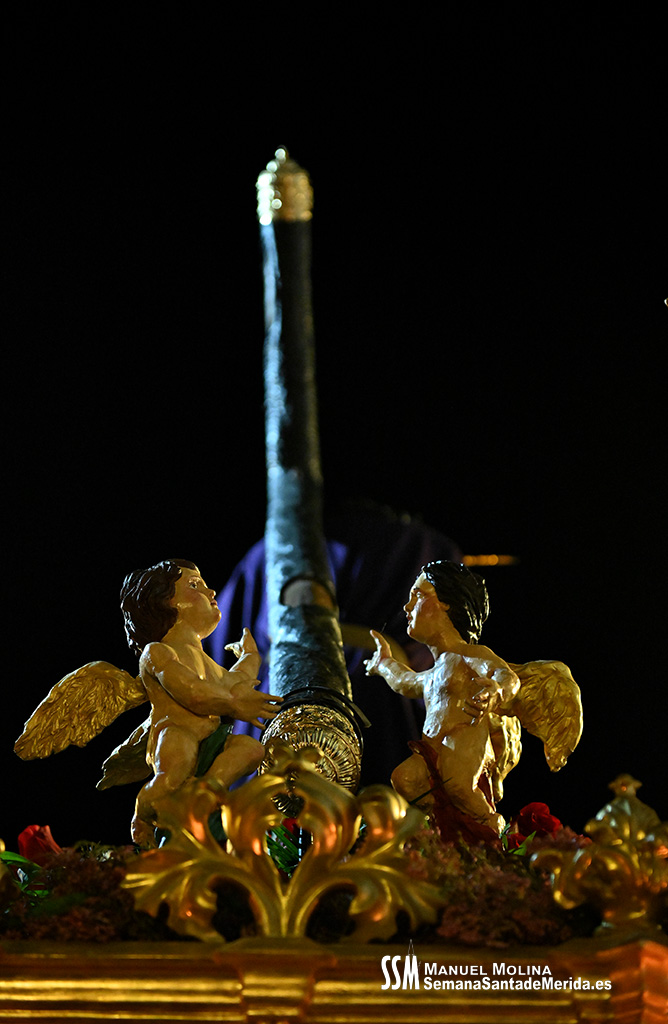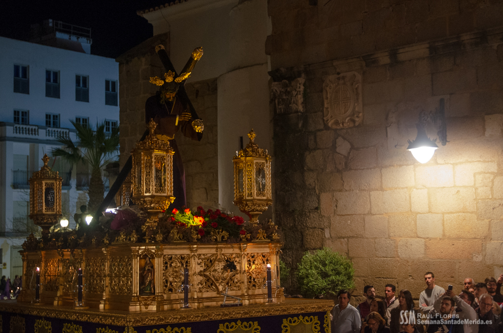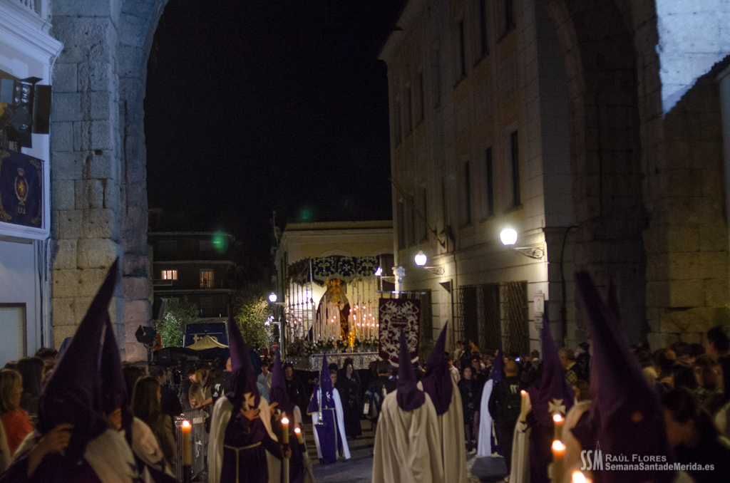 En el alto del calvario se funde la luz de los cirios, el negro de la noche y el “morao” que le da identidad a la Hermandad. Se mezcla el sentimiento del dolor amargo de una madre, con la fe de quienes procesiona por ellos. El esfuerzo, las ganas y la apuesta por estar allí un año más. Y en el recuerdo de Mérida, una Oración brillante, la Flagelación imponente, la solemnidad del Nazareno y el hermoso rostro de la Amargura.