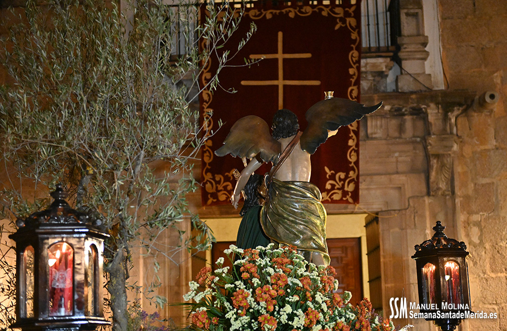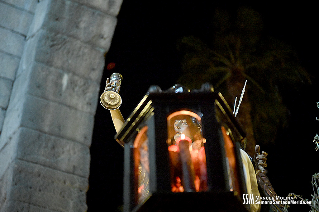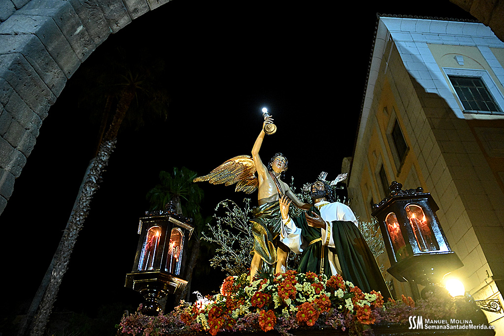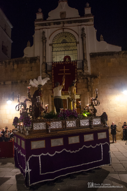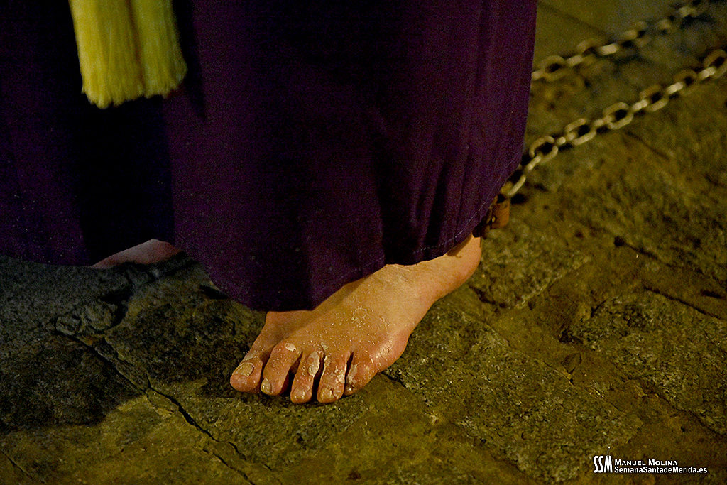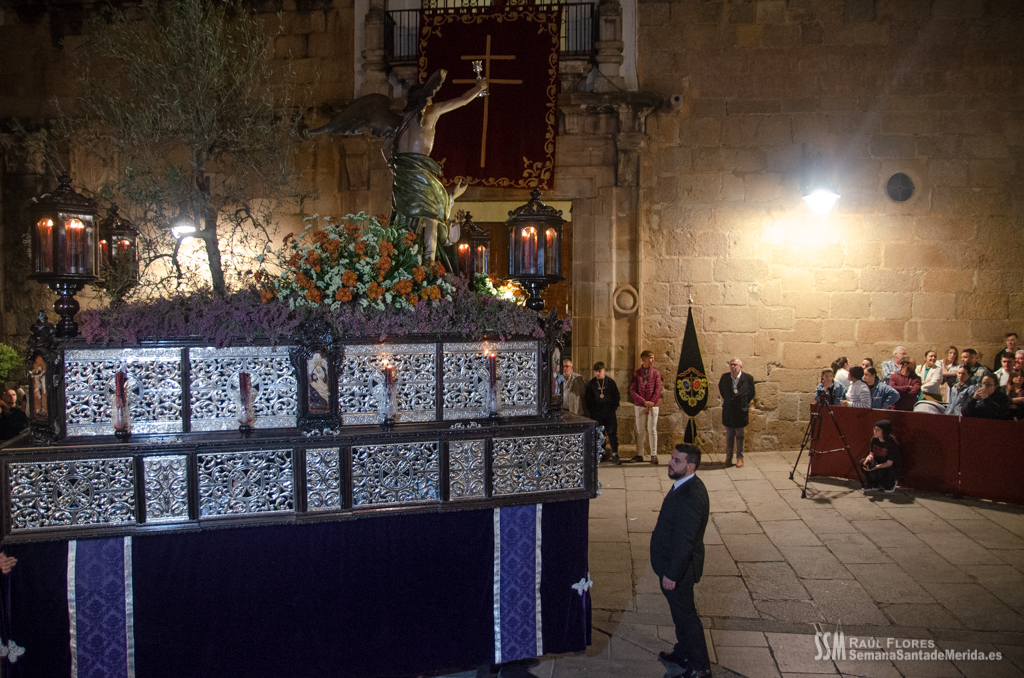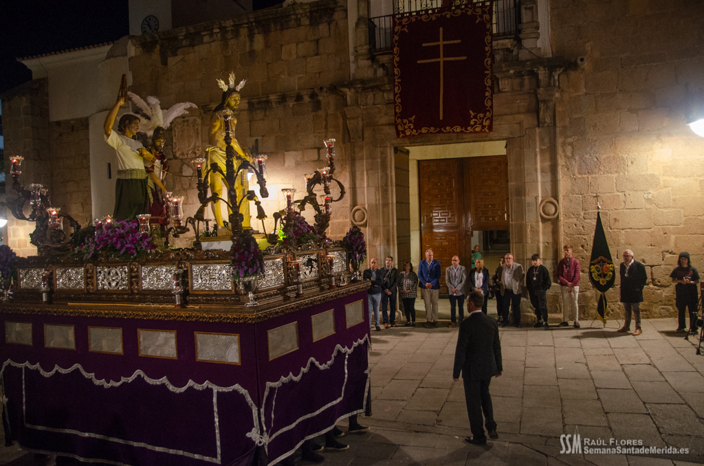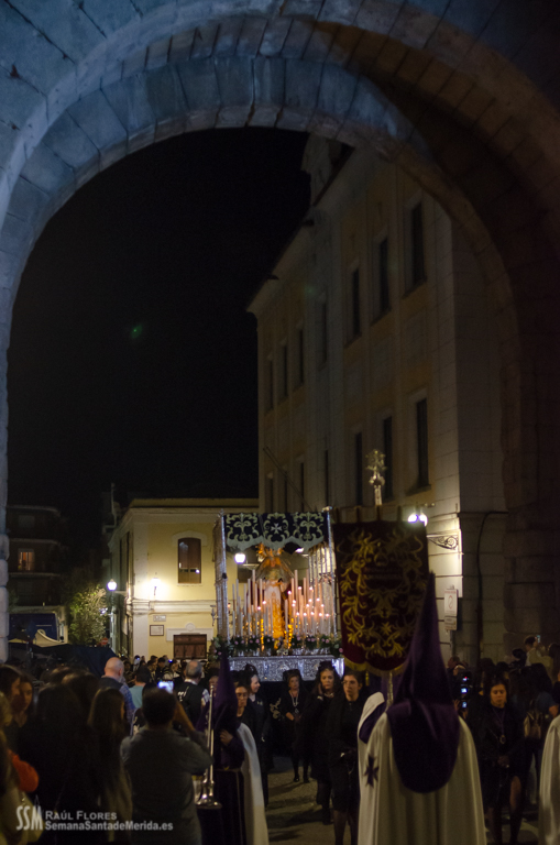 En el alto del calvario se funde la luz de los cirios, el negro de la noche y el “morao” que le da identidad a la Hermandad. Se mezcla el sentimiento del dolor amargo de una madre, con la fe de quienes procesiona por ellos. El esfuerzo, las ganas y la apuesta por estar allí un año más. Y en el recuerdo de Mérida, una Oración brillante, la Flagelación imponente, la solemnidad del Nazareno y el hermoso rostro de la Amargura.