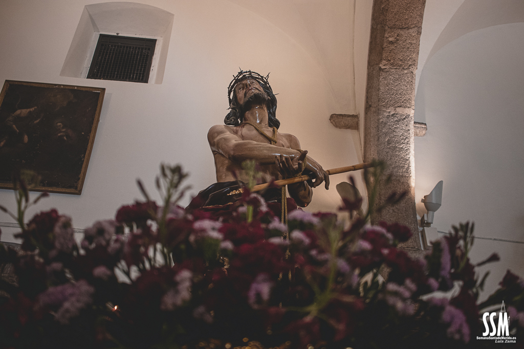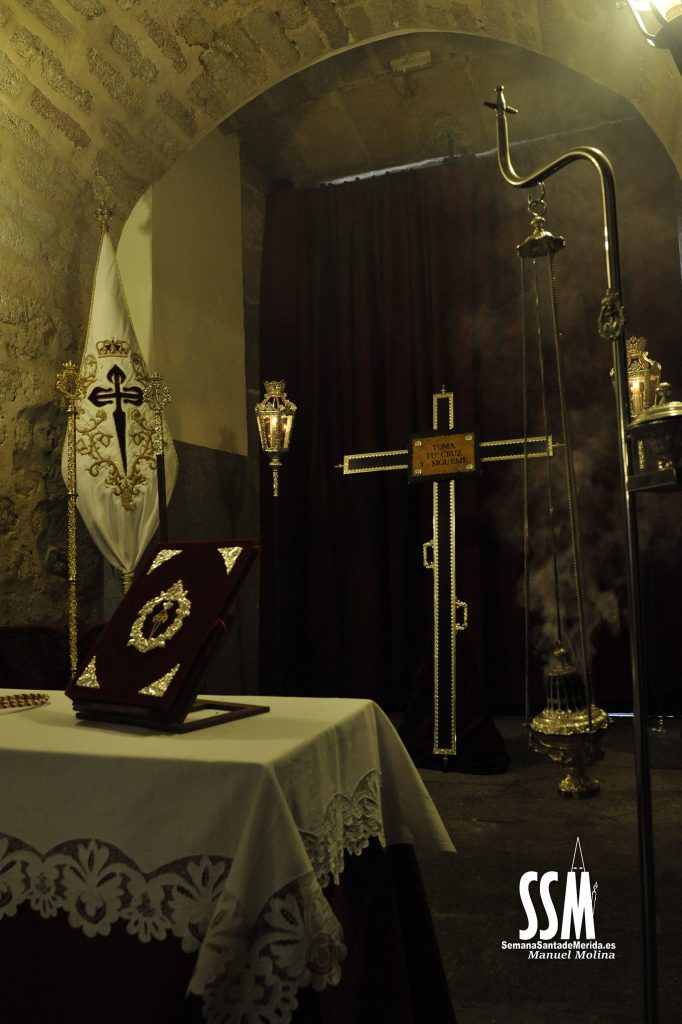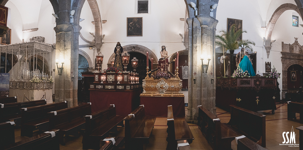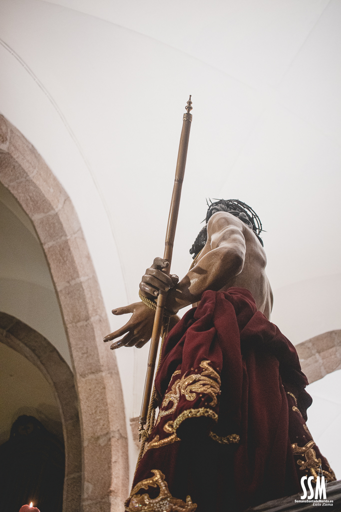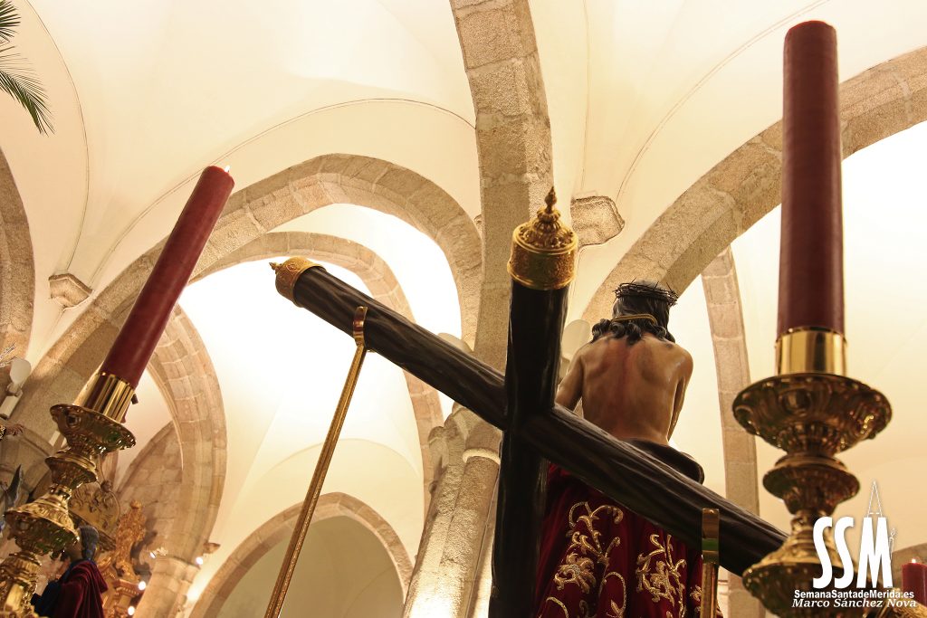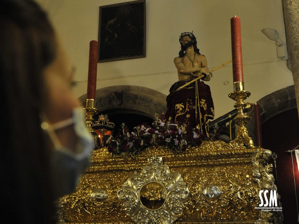 Tampoco vimos esa estampa íntima y sobrecogedora de la Hermandad entre los muros del convento de las “Encerradas” y de nuevo nos faltó el soberbio caminar del Cristo de las Injurias y el elegante paseo del Medinaceli, pero sí pudimos mirarlos de cerca, observar cada detalle y casi sentir lo que ellos sienten. No vimos a la luna traspasar el palio y hacer destellos entre los rosarios de plata, ni pudimos disfrutar del discurrir de la Hermandad por el Templo de Diana, pero sí pudimos dirigirnos a las tres imágenes de una forma íntima y paciente, un rato de liturgia en torno a lo esencial de todo esto. La mirada del Cristo no pudo observar el cielo, pero hace tiempo que nosotros lo hacemos por él y también cargamos con su cruz.