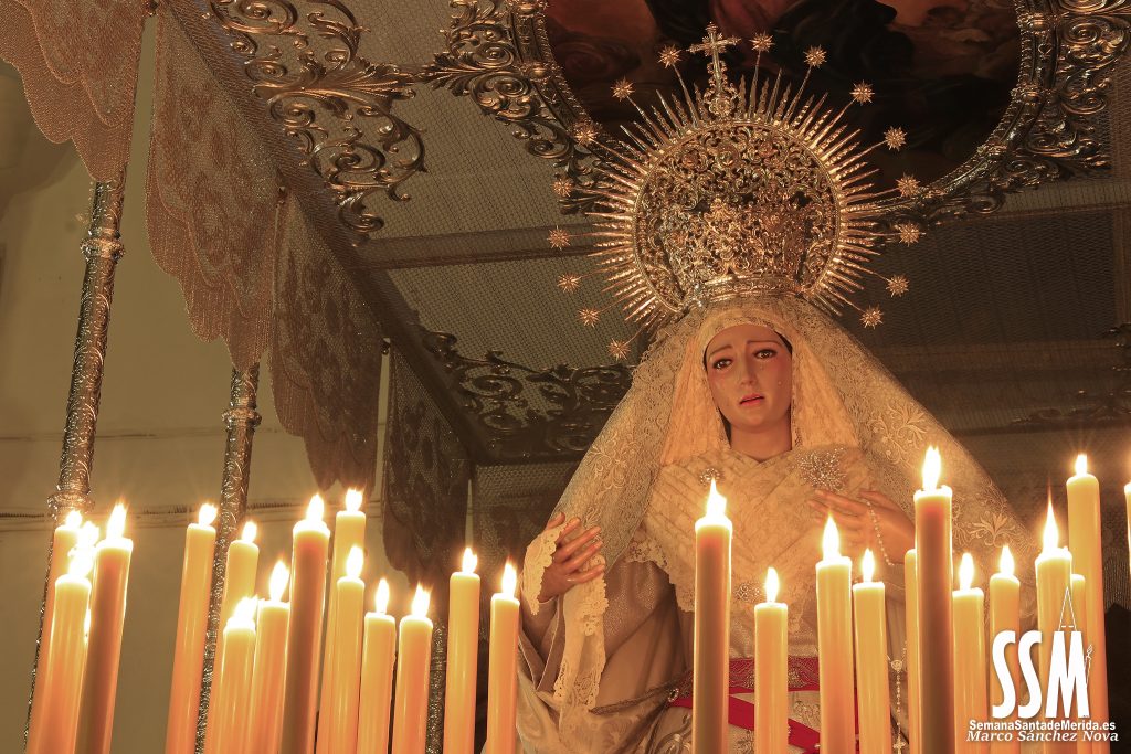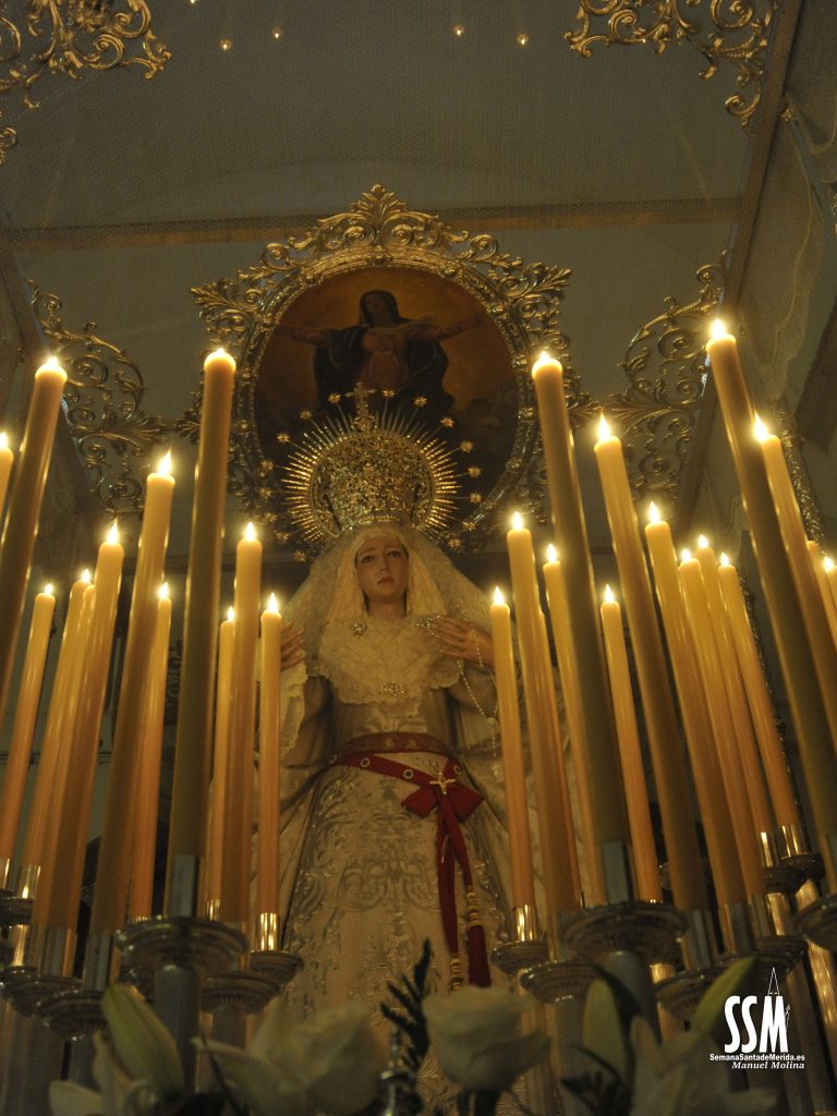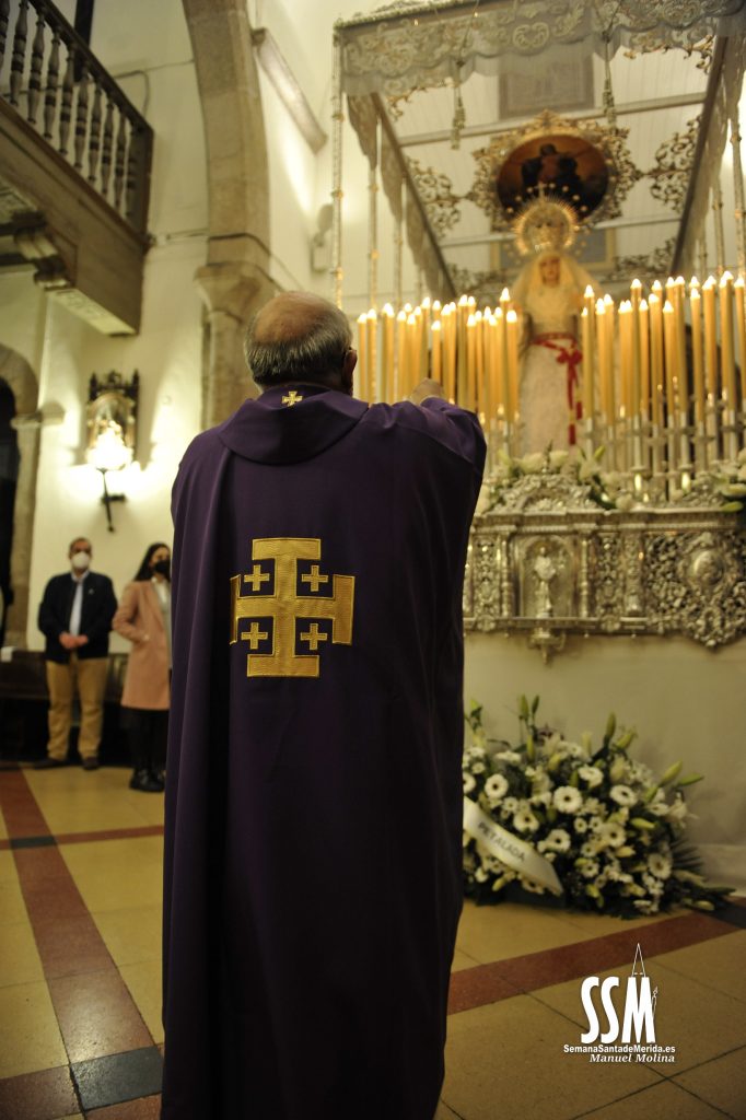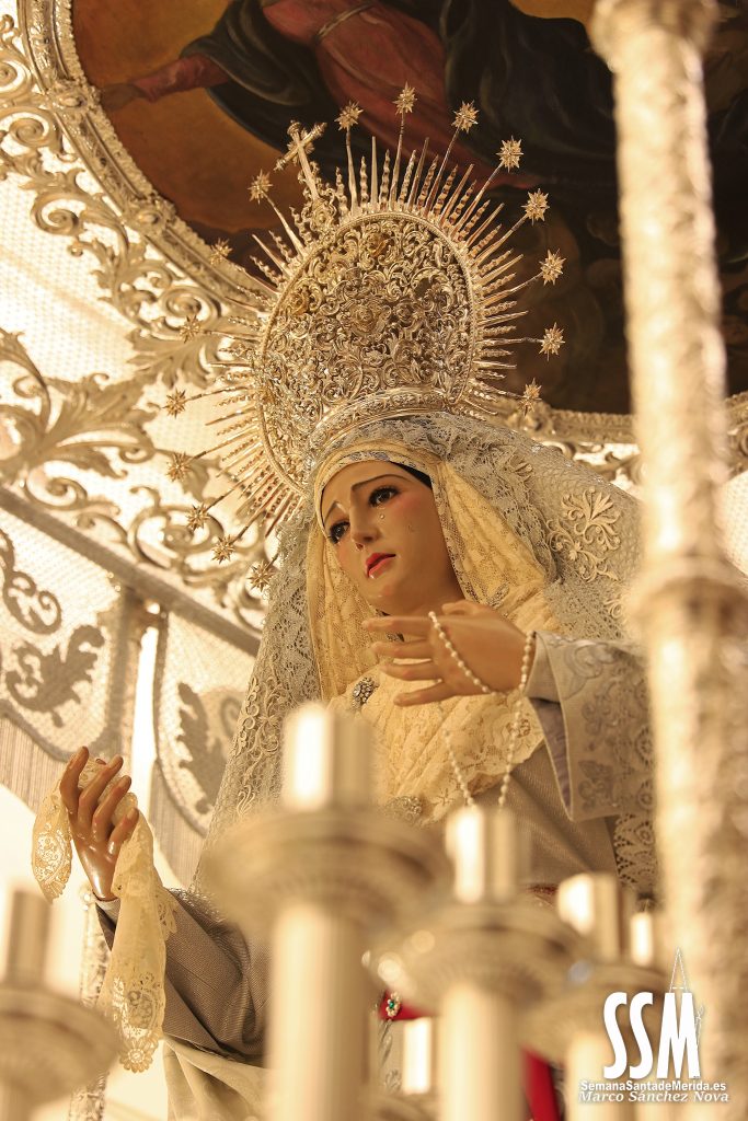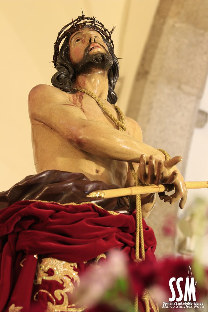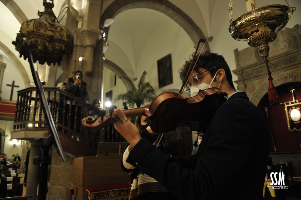 Tampoco vimos esa estampa íntima y sobrecogedora de la Hermandad entre los muros del convento de las “Encerradas” y de nuevo nos faltó el soberbio caminar del Cristo de las Injurias y el elegante paseo del Medinaceli, pero sí pudimos mirarlos de cerca, observar cada detalle y casi sentir lo que ellos sienten. No vimos a la luna traspasar el palio y hacer destellos entre los rosarios de plata, ni pudimos disfrutar del discurrir de la Hermandad por el Templo de Diana, pero sí pudimos dirigirnos a las tres imágenes de una forma íntima y paciente, un rato de liturgia en torno a lo esencial de todo esto. La mirada del Cristo no pudo observar el cielo, pero hace tiempo que nosotros lo hacemos por él y también cargamos con su cruz.