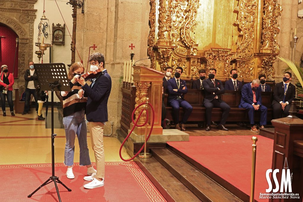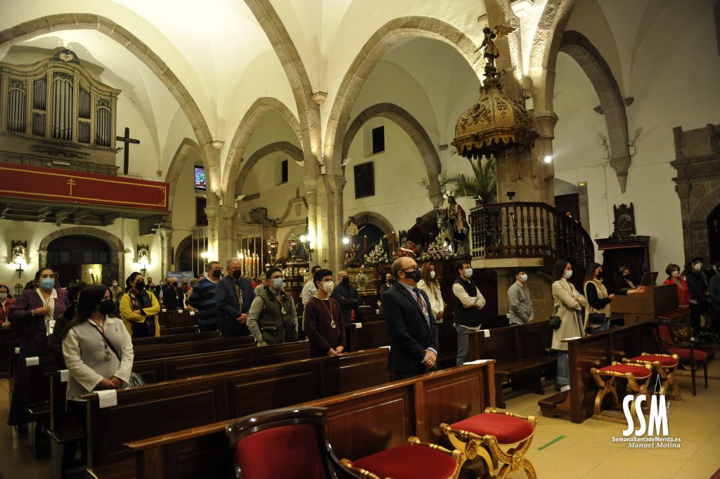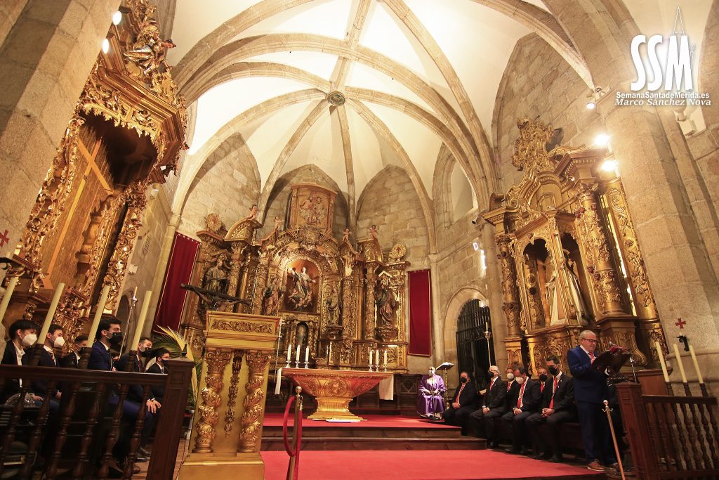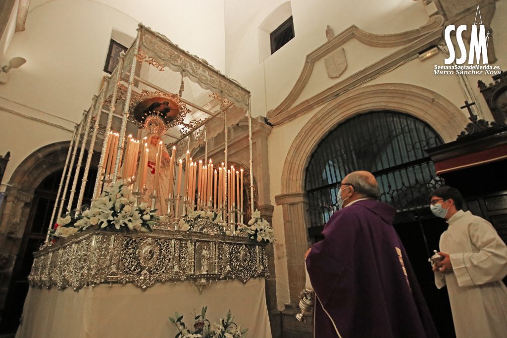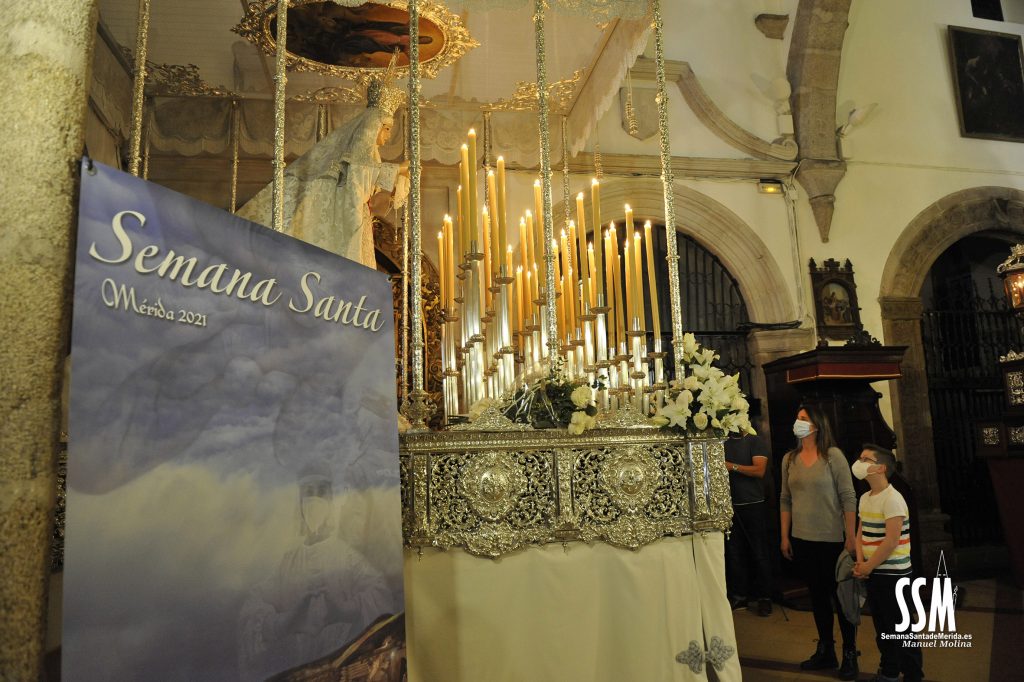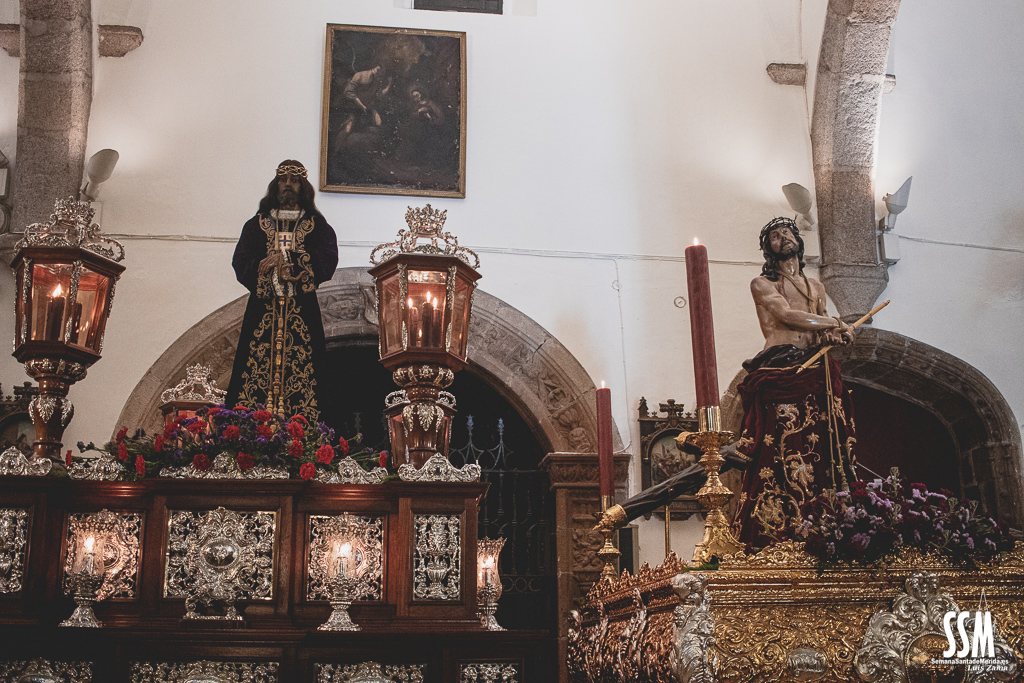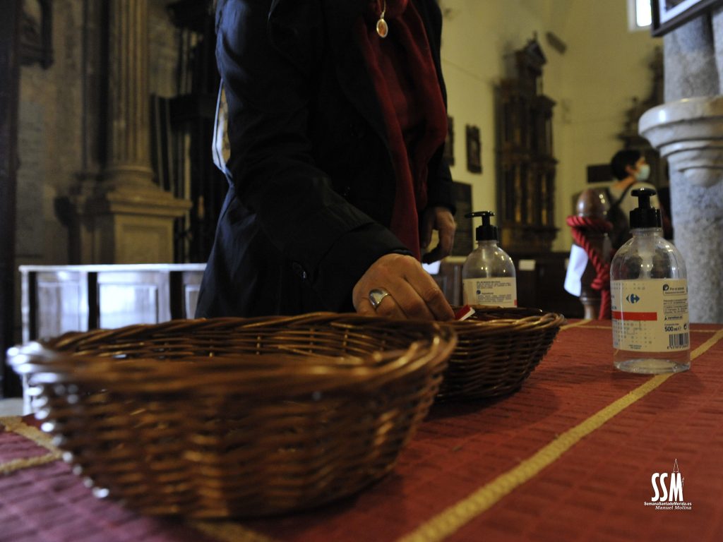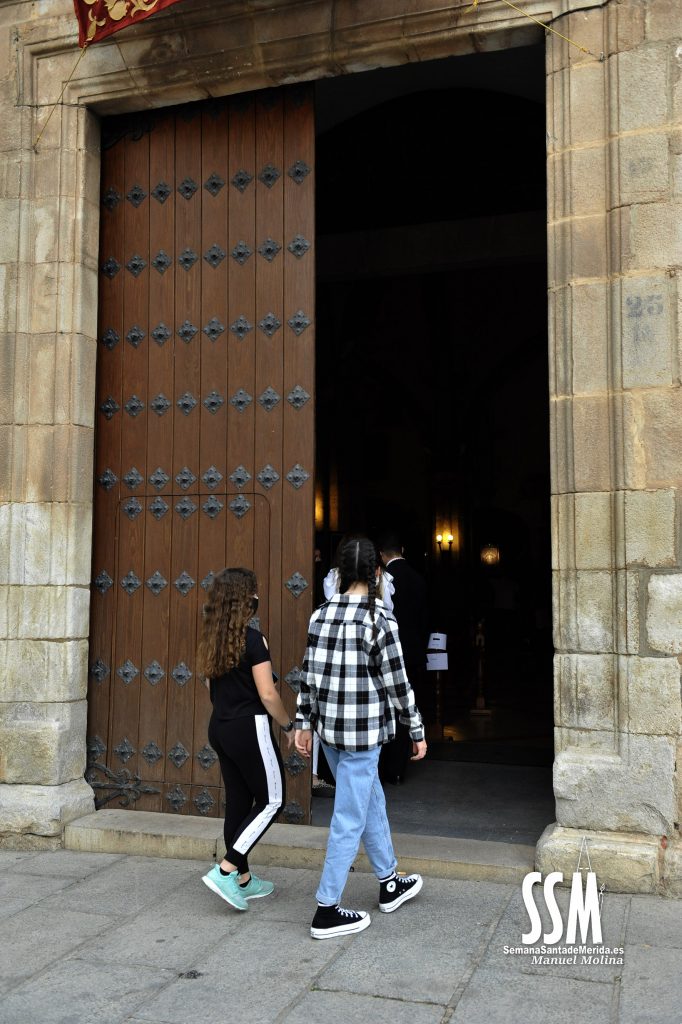 No hubo prisas de la Cruz de Guía por cruzar el dintel de Santa María, pero en el interior de Concatedral hubo calma y serenidad, detalles cuidados, organización y disposición de los hermanos que volvieron a echar el resto para ofrecer lo mejor. La ciudad no se echó a la calle, no hubo aglomeraciones esperando la puesta en marcha del cortejo, pero durante toda la jornada sí hubo un goteo constante de fieles y hermanos de la Cofradía Infantil que se acercaron a venerar a sus titulares, de nuevo con el buen hacer de la familia que forma esta cofradía custodiando el acceso para respetar las normas sanitarias.